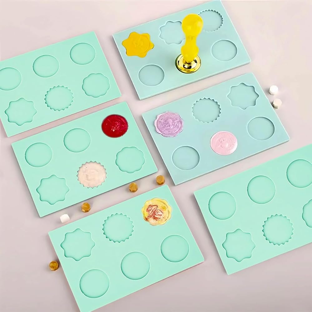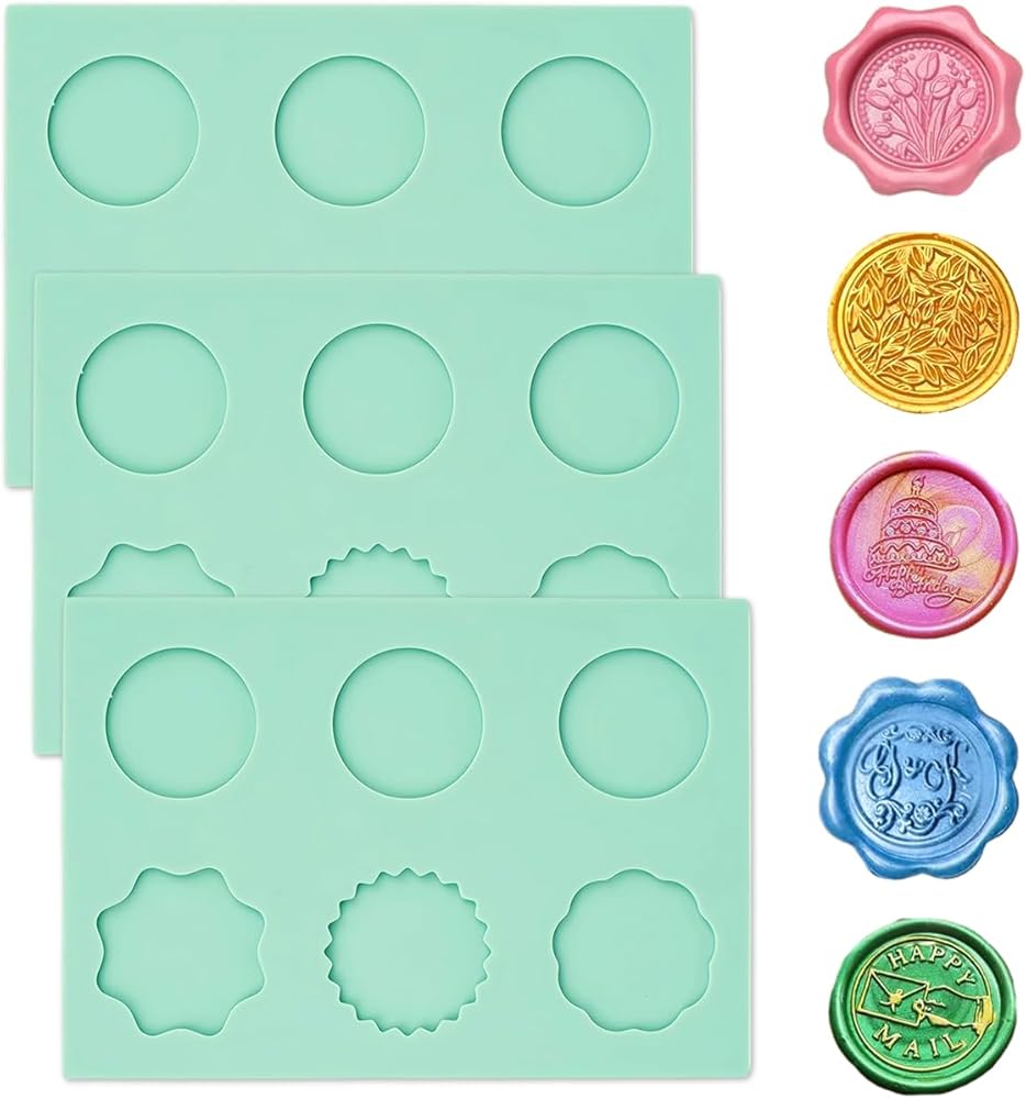 【تشمل العبوة】سوف تحصل على 3 قطع من حصيرة ختم الشمع السيليكون، كل وسادة تحتوي على 6 تجاويف، وتتضمن ثلاثة أشكال دائرية وثلاثة أشكال مضلعة.