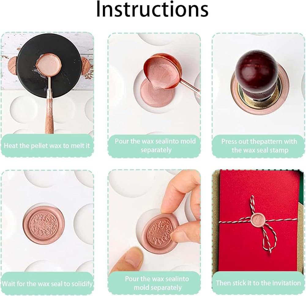 【سهلة الاستخدام】استخدمي ملعقة لصب الشمع الذائب في كل فتحة من وسادة السيليكون، ثم ختم الختم على الشمع، وانتظري بضع ثوانٍ حتى يبرد الشمع، واضغط على السيليكون بإبهامك للحصول على نمط الشمع النهائي. عند الاستخدام على الأظرف، يمكنك إما خبز الجزء الخلفي من ختم الشمع مرة أخرى بالنار ولصقه على الظرف، أو يمكنك لصق ختم الشمع على الظرف بشريط على الوجهين، وهو مريح للغاية.