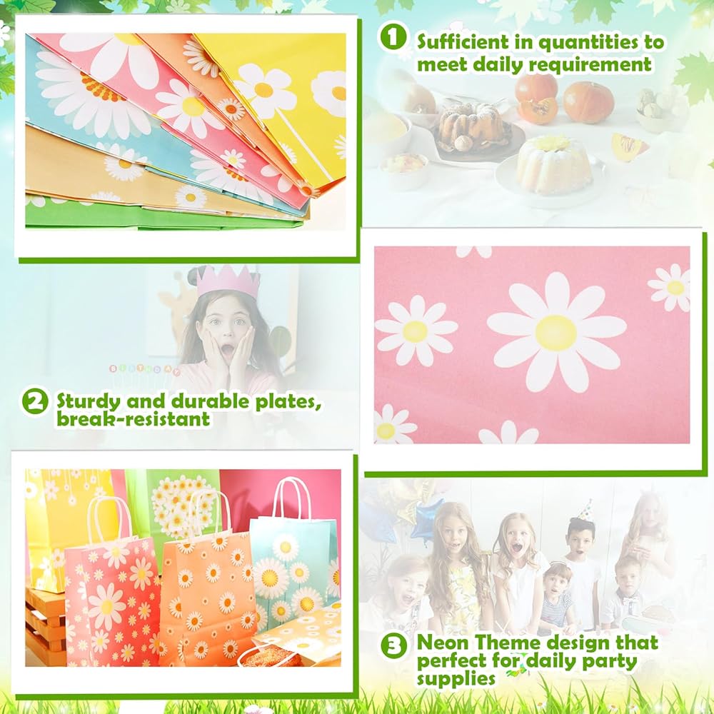 • تصميم كلاسيكي ورائع: تتميز حقائب الحفلات الورقية الخاصة بنا بطباعة ديزي كلاسيكية وجميلة مصممة لدمج سحر الزهور في حفلتك؛ مصممة لتلبية مختلف الأذواق، مما يجعل حفلتك ذات الطابع الخاص أكثر جاذبية ولا تنسى