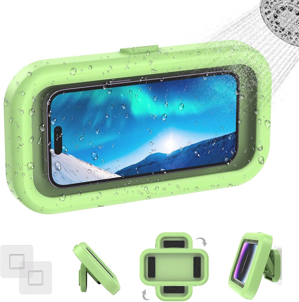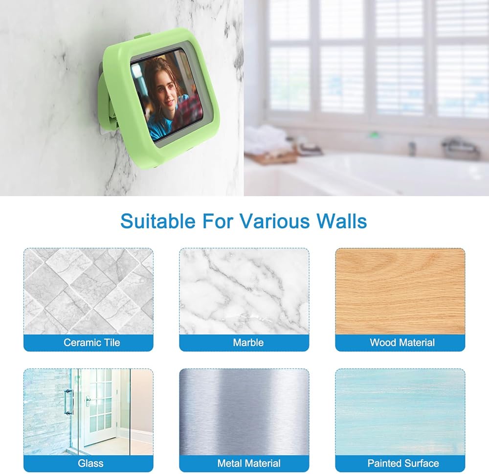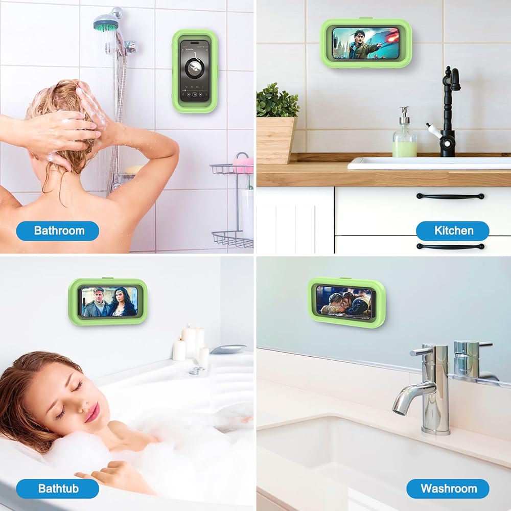 🛀【تصميم مقاوم للماء ومضاد للضباب】حامل هاتف الدش المقاوم للماء هذا مصنوع من مادة أكريلونتريل بوتادين ستايرين عالية الجودة، ويتميز بهيكل مزدوج الطبقات مقاوم للماء وحلقة مدمجة مقاومة للماء ووسادة إسفنجية مرتفعة، تحمي هاتفك من بخار الماء والرذاذ في الداخل. الاستحمام!