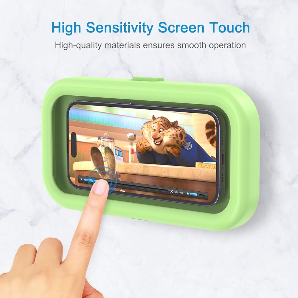 🛀【لمس شاشة حساسية عالية الدقة】الغطاء الأمامي المثبت على جدار الدش مجهز بشاشة لمس 0.25 مم، وهي سريعة الاستجابة وتضمن شاشة HD للهاتف ولمس شاشة عالية الحساسية. يمكنك تحريك شاشة الهاتف بحرية، وضبط مستوى الصوت، وتغيير الأغنية
