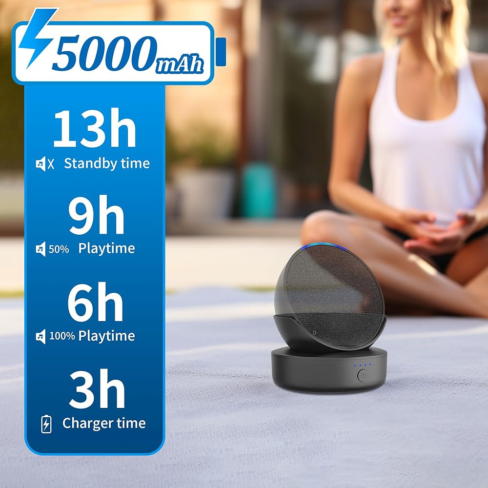 【أداء صوت أفضل】 تصميم فتحة دليل الصوت للمحطة القابلة لإعادة الشحن يلتقط الصوت بسهولة أكبر ويعرض الصوت بشكل أفضل. يمكنك الاستمتاع بصوت ستيريو رائع في أي مكان. لا يوجد خسارة في جودة الصوت، مجرد إضافة رائعة.