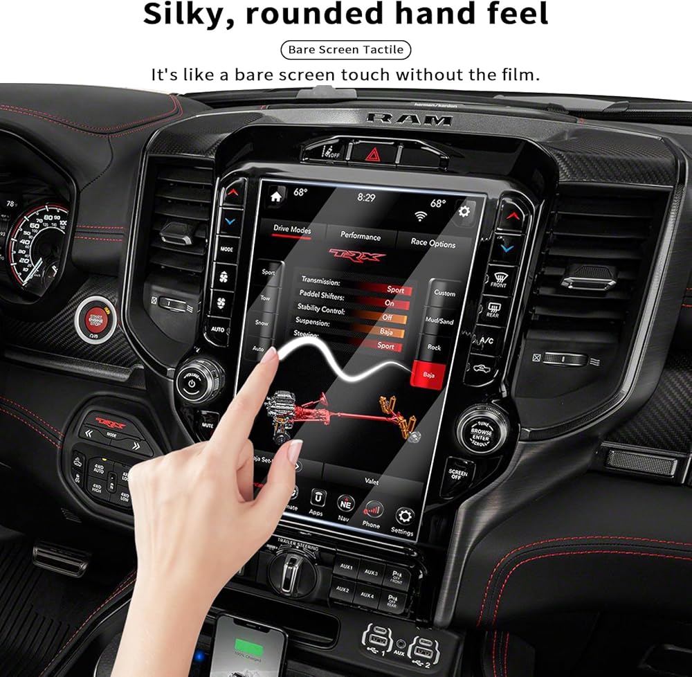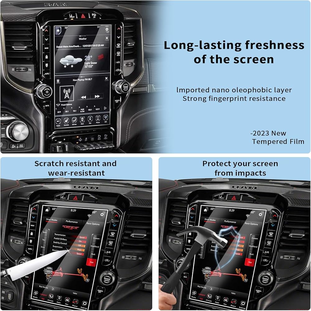 • نطاق التطبيق: يتوافق واقي الشاشة مقاس 12 بوصة مع موديلات شاشة دودج رام مقاس 12 بوصة، بما في ذلك ملحقات شاحنة دودج رام 1500 و2500 و3500 يوكونكت 2019-2024.