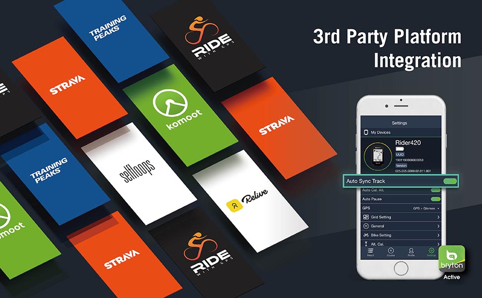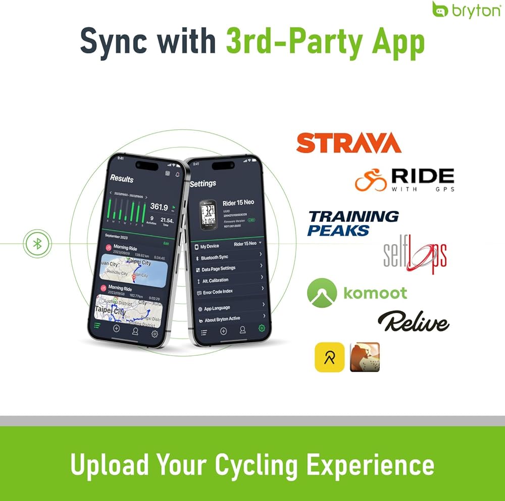 متوافق مع تطبيق Bryton Active، بما في ذلك المزامنة التلقائية مع STRAVA / TrainingPeaks / Selfloops. قم بتخطيط المسارات على Bryton Active وعرض نتائج التمرين وتعديل إعدادات الجهاز / صفحات البيانات.
