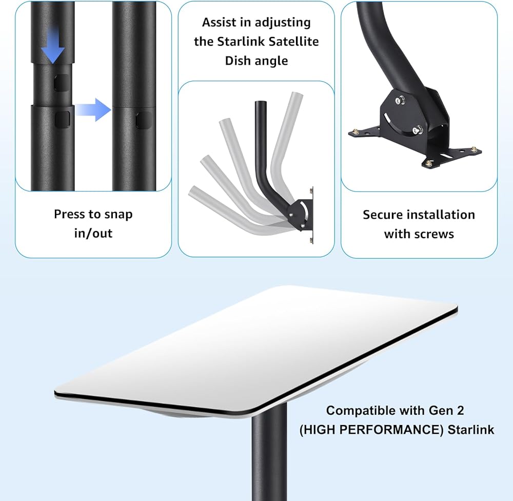 [حامل Starlink] متوافق مع V2 Starlink. يساعد حامل السقف Starlink هذا على تحسين أداء وموثوقية خدمة الإنترنت Starlink الخاصة بك. من خلال وضع طبق القمر الصناعي بشكل صحيح مع مجموعة التركيب، يمكنك زيادة استقبال الإشارة إلى الحد الأقصى وتقليل العوائق وضمان اتصال موثوق وغير متقطع بالإنترنت Starlink.