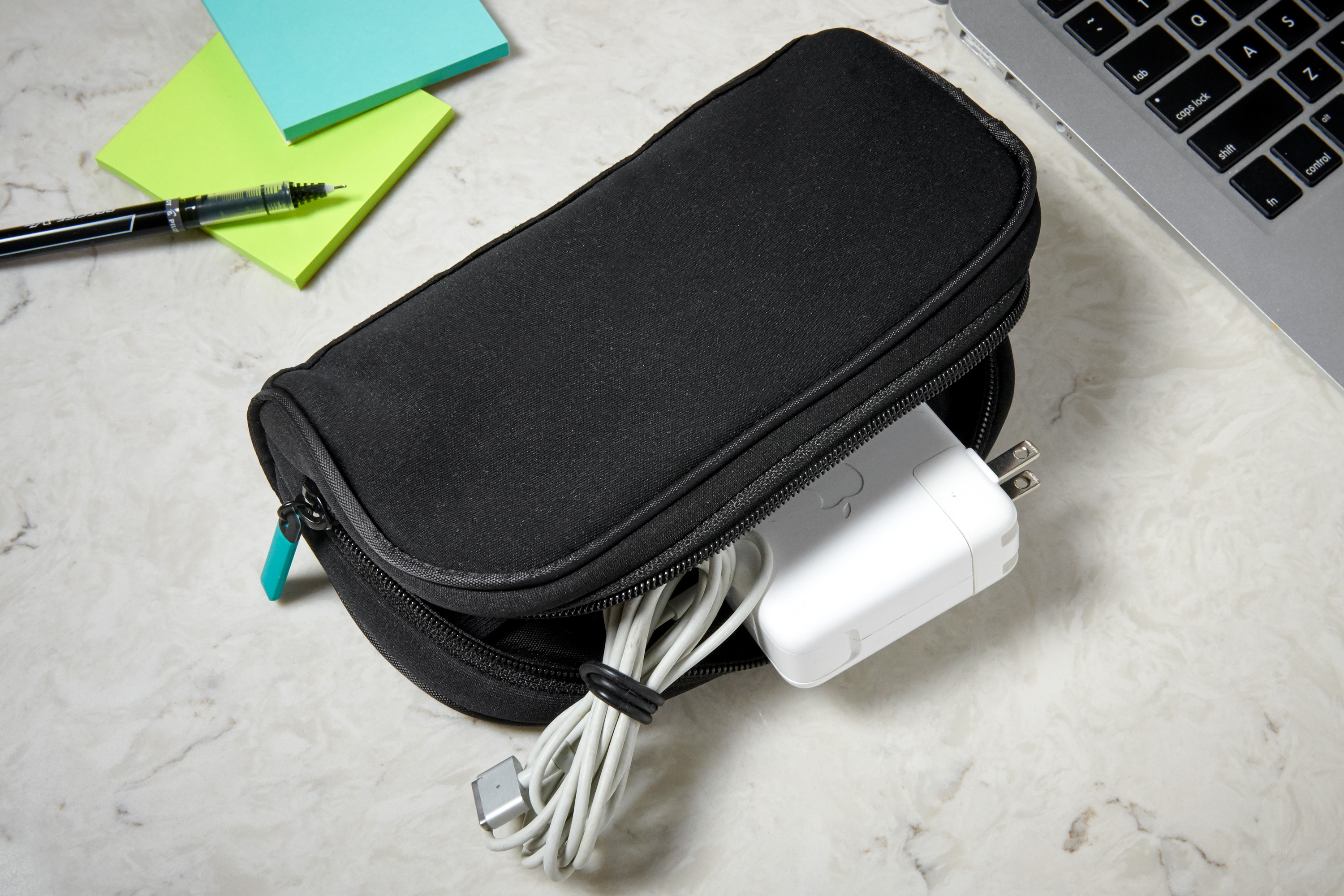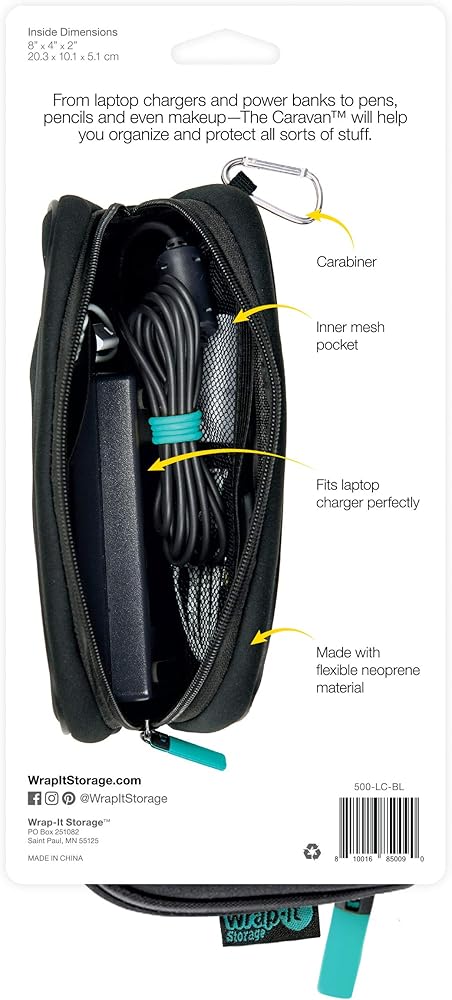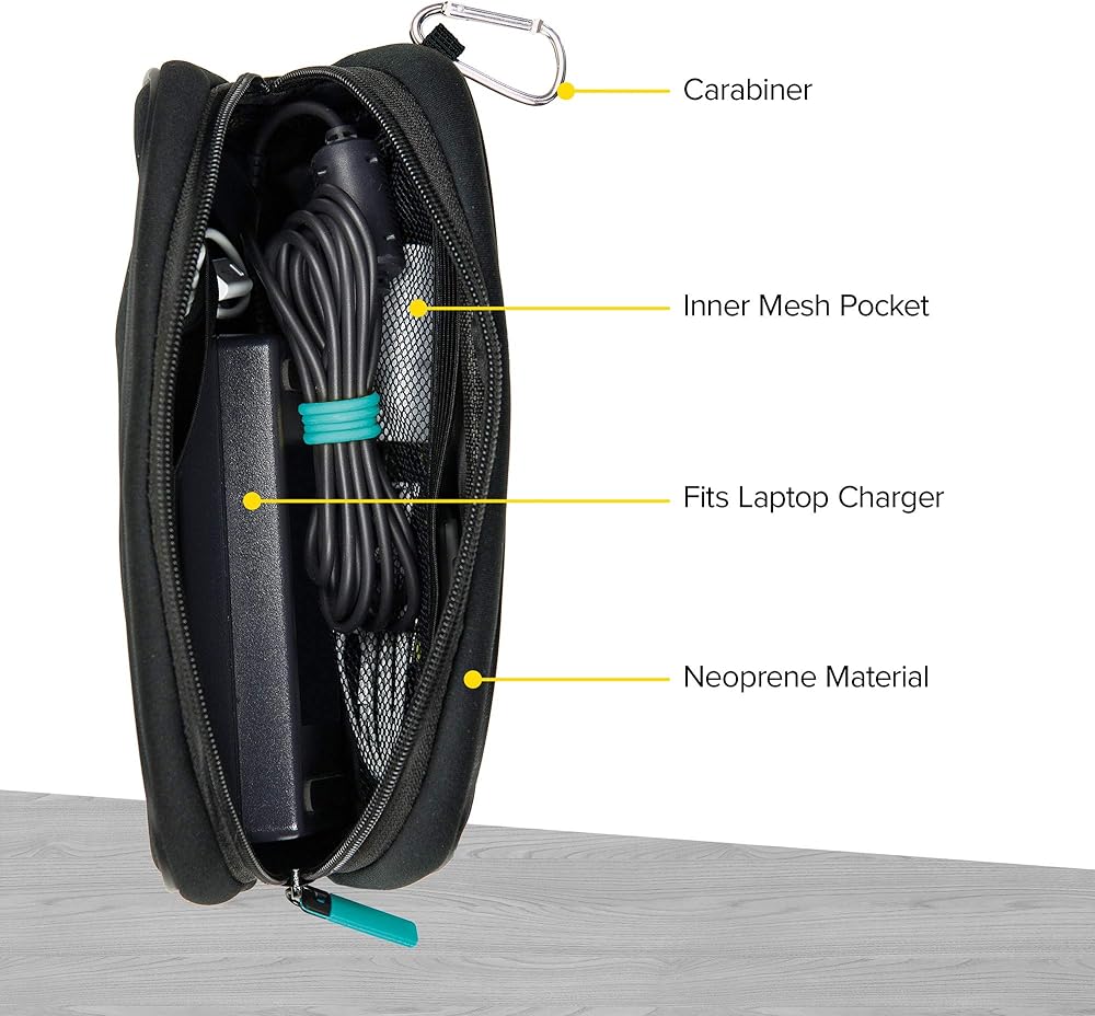 حقيبة Caravan Neoprene من Wrap-It Storage - حقيبة شاحن الكمبيوتر المحمول، وحقيبة ملحقات الإلكترونيات والكمبيوتر المحمول، وسلك طاقة الكمبيوتر وحقيبة الملحقات، وحقيبة السفر أو حقيبة القلم الرصاص، أسود