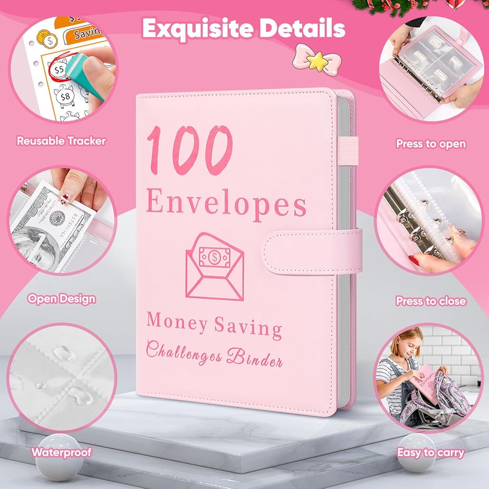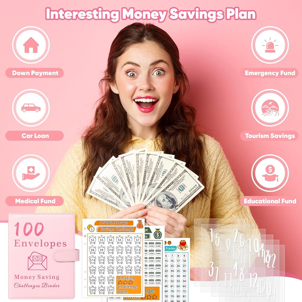 Money saving challenge budget binder with 100 cash envelopes is the perfect gift for friends, graduation, teens or family who are trying to save up, helping them start their savings goals in a stylish and convenient way. Our 100 Envelopes Money Saving Challenge will be the trusted companion on your journey to saving money.