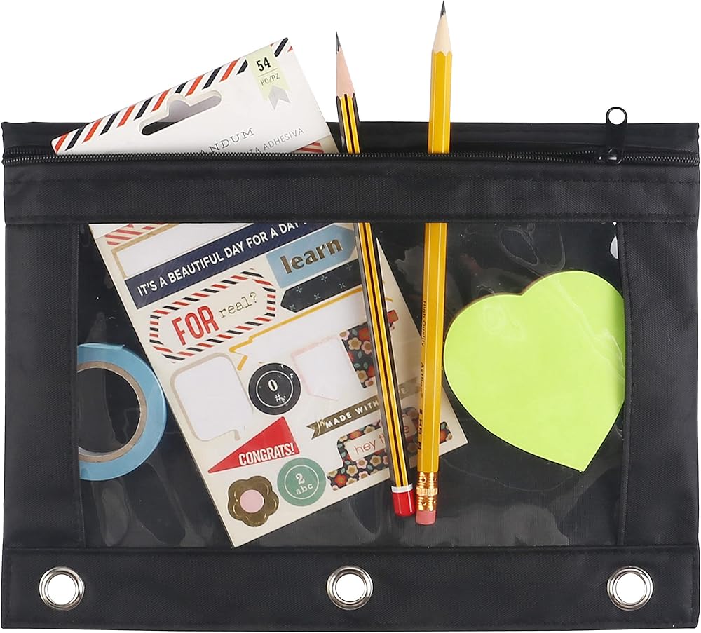 Binder Pencil Pouch features a three-hole design to keep writing utensils securely organized in your three-hole binder (not included). Clear front keeps supplies visible to help you quickly find what you need. Pencil pouch is perfect for organizing pens, pencils, highlighters, markers, paper clips and more.