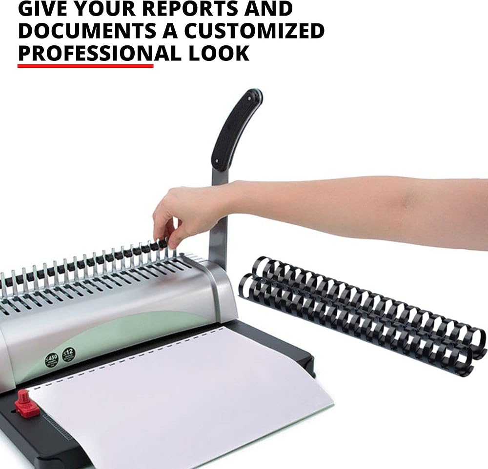 Get a professional edge! Plastic comb binding creates easy-to-handle documents with a high-quality, custom look. For use with any standard 19-ring comb-binding system. Binding Combs allow you to create professional-looking bound projects affordably and easily. Spiral comb binding offers documents both a professional, finished look and a lay-flat design with the ability to flip pages 310° from front to back. These plastic combs are an excellent high-quality choice for business proposals, directories, staff handbooks, annual reports, company presentations, restaurant menus, and more!