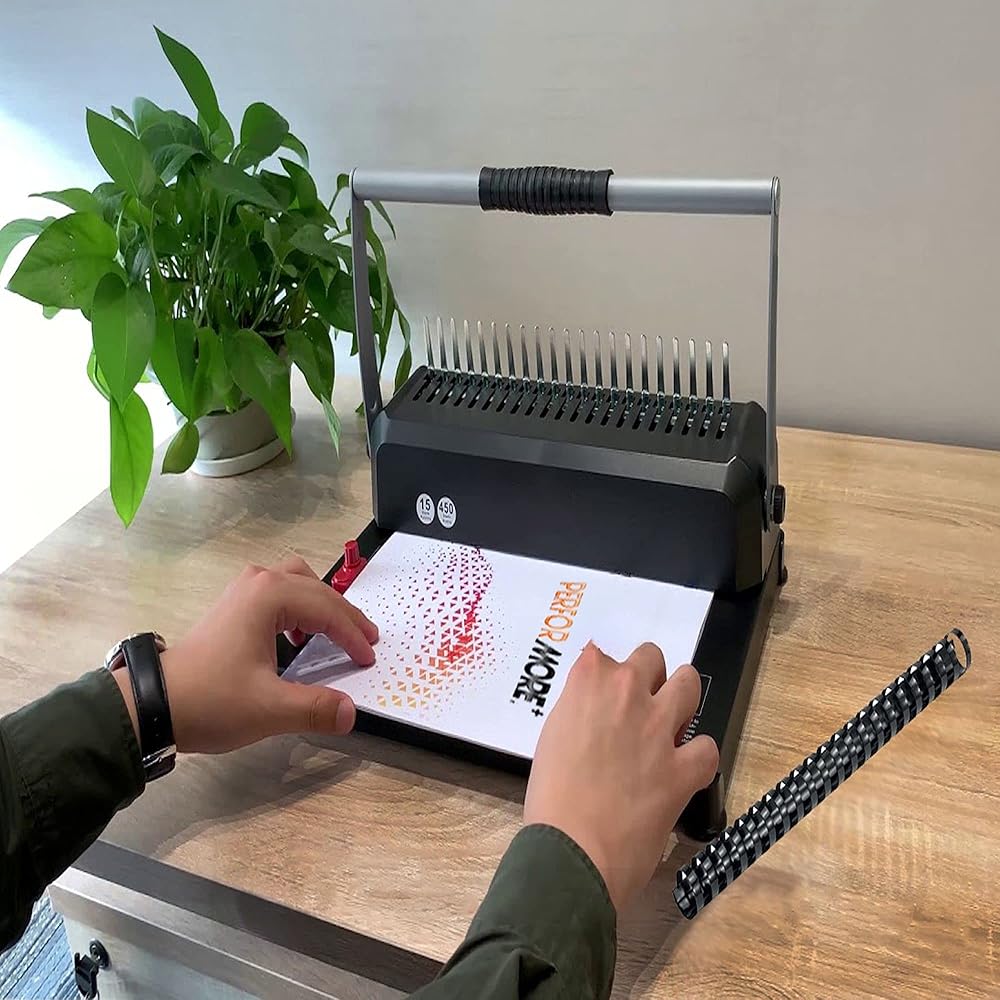 Versatile plastic comb binding gives a professional appearance to bound reports and presentations.