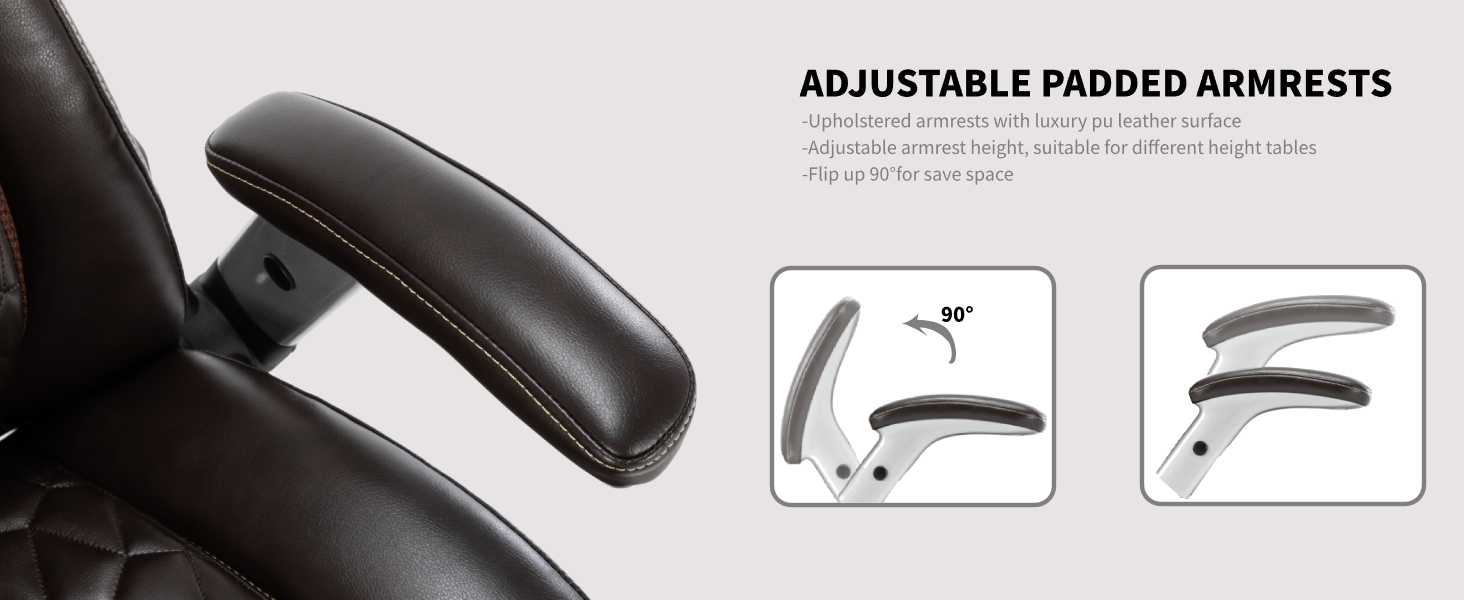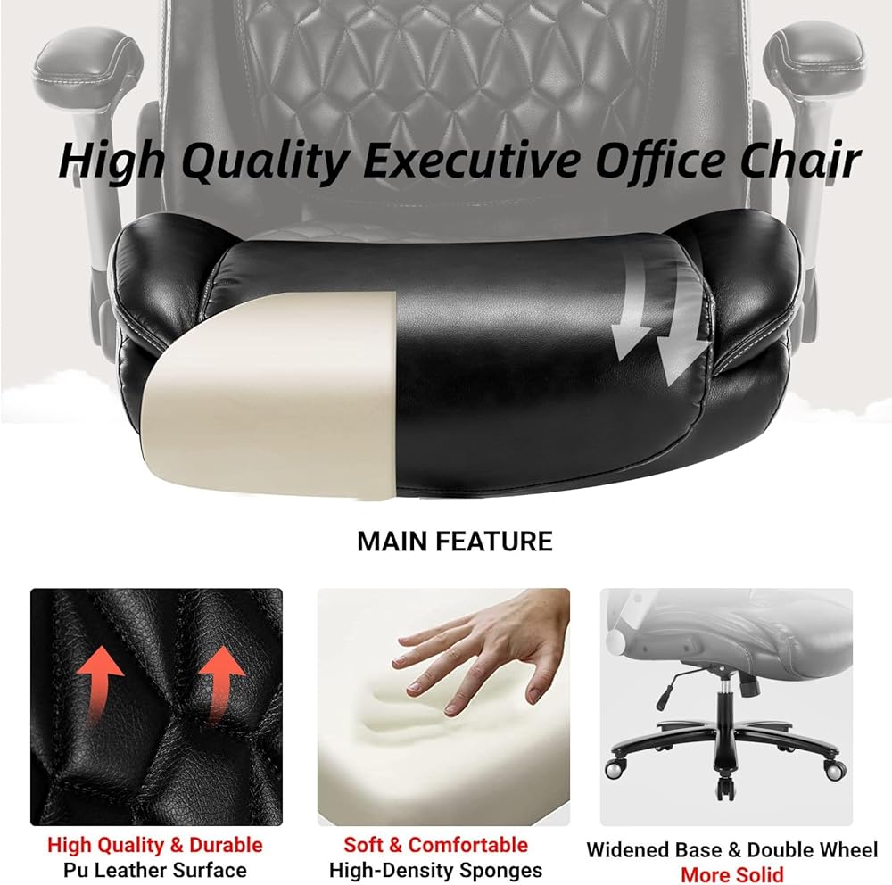 【كرسي تنفيذي فاخر من جلد البولي يوريثان】- مادة جلدية صديقة للبشرة توفر ملمسًا ناعمًا، ومقاومة للخدوش والبقع والتقشير والتشقق، وتصميم الشلال وسادة مزدوجة الطبقات، وإسفنج مدمج سميك وناعم، ومرونة قوية للوسادة لتوفير يمنحك راحة دائمة، ويخفف من إزعاج الساق الناتج عن الجلوس لفترات طويلة؛ مع مساند الأذرع المنجدة، مع المظهر عالي الجودة والراحة القصوى، خيارك الأفضل للمنزل أو المكتب.