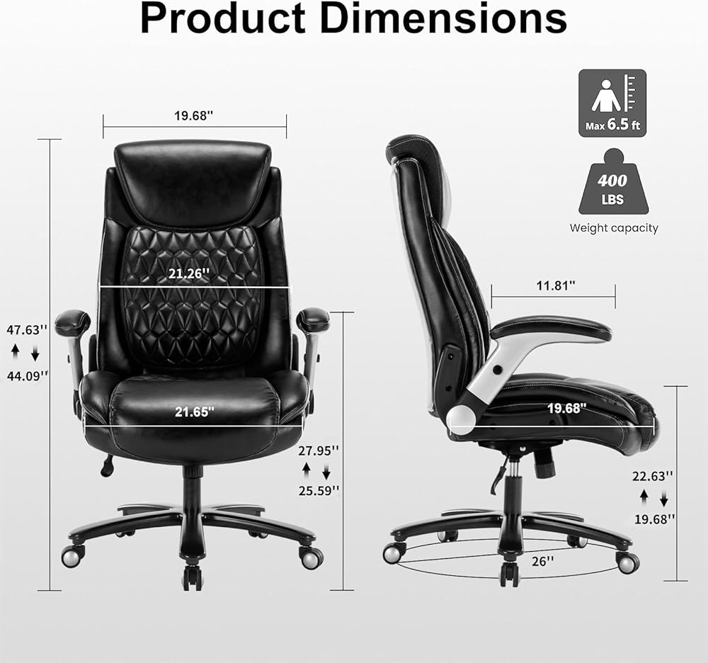 【كرسي مكتب كبير الحجم بوزن 400 رطل】- إطار معدني قوي متكامل، قاعدة من النايلون عالي التحمل، أسطوانة غاز مطورة من الفئة 4، وعجلات على شكل سباق سلسة، شهادة BIFIMA، أكثر موثوقية ومتينة؛ أقصى سعة تحميل تصل إلى 400 رطل، تناسب الأشخاص ذوي الأجسام الكبيرة أو الكبيرة والمقعد الواسع يجعل الدخول والخروج سهلاً.