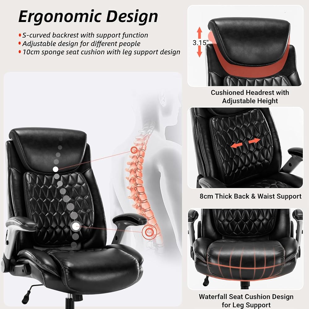 【تصميم مريح لراحتك】- يعتمد كرسي المكتب الكبير الطويل الخاص بنا على تصميم محيطي متطور للعمود الفقري، ويحافظ على عمودك الفقري في حالة استرخاء؛ مسند رأس واسع وسميك بارتفاع 8.89 سم قابل للتعديل، مما يضمن أن يشعر الجميع بدعم الرقبة الناعم النهائي؛ تغطية كاملة لدعم أسفل الظهر السميك، تصميم شبه ثابت، وفقًا لوضعية الجلوس المختلفة لتوفير دعم الخصر الأكثر دقة؛ كل هذه التصميمات المريحة، فقط من أجل راحتك اليومية.