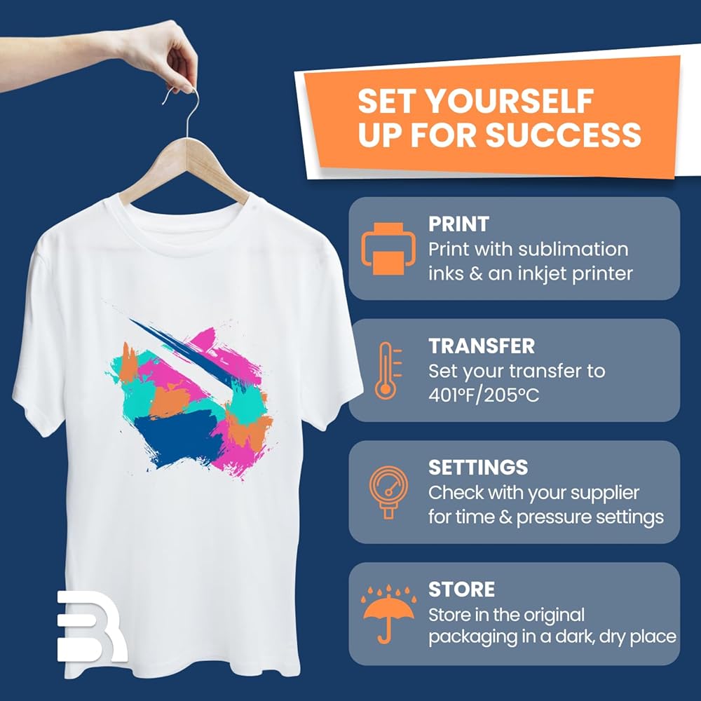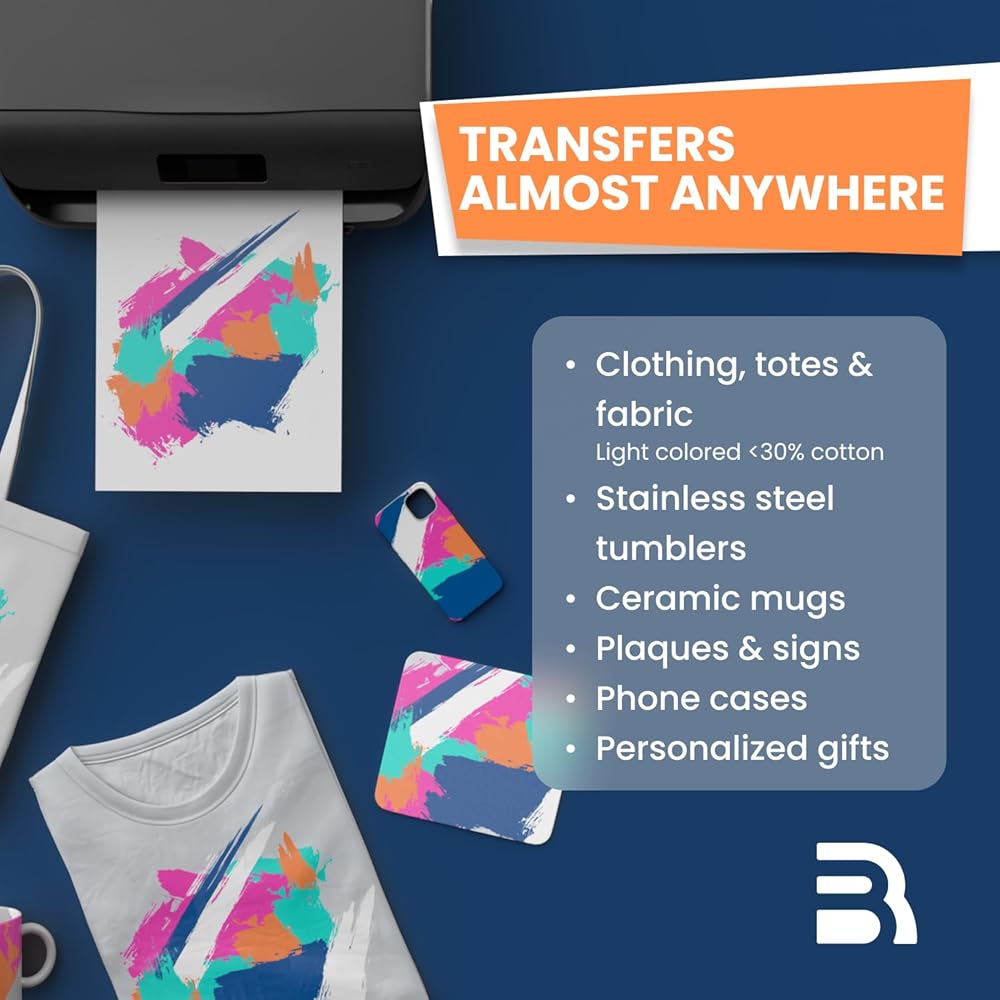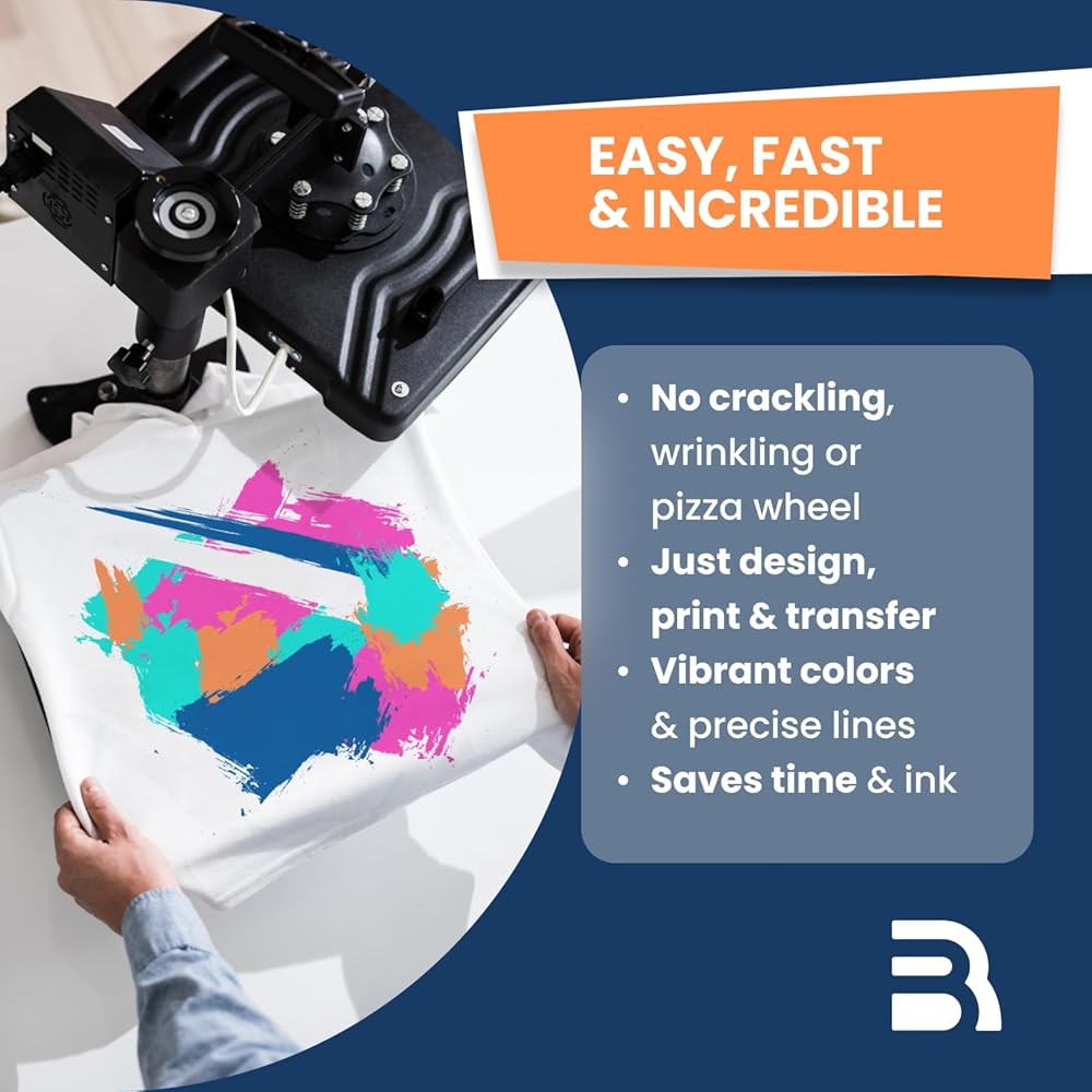 وفر الحبر والوقت مع طباعة الحبر: تم تصميم ورق النقل الحراري الخاص بنا للطابعات النافثة للحبر، ويقدم نتائج احترافية بدون "عجلة بيتزا" أو ألوان غير متساوية. ارفع مستوى مشروعاتك باستخدام ورق النقل الحراري القابل للطباعة والذي يوفر تفاصيل مذهلة.