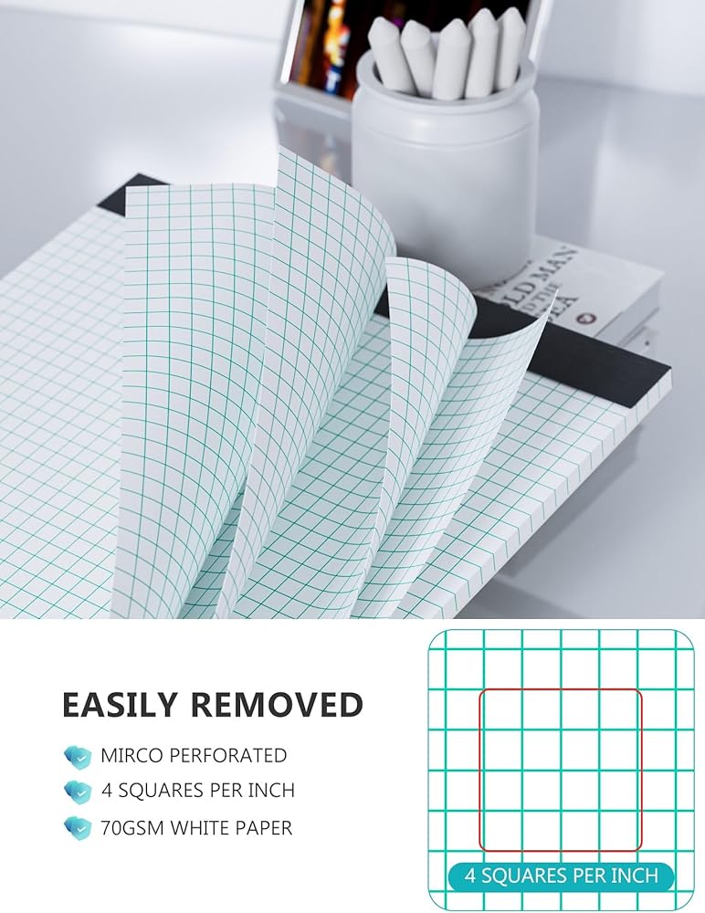 【يتم نزعها بسرعة وأناقة】 - تم تصميم وسادات الورق الشبكية مقاس 8.5 × 11.75 بثقوب في الأعلى. تتيح لك هذه الصفوف من الثقوب الصغيرة فصل ورقة الرسم البياني عن بقية اللوحة دون إتلاف الغلاف. تم تصميم وسادات الكتابة الورقية بطباعة على الوجهين، بحيث يمكنك الرسم على كلا الجانبين، وبالتالي استخدام الورق إلى أقصى حد. يمكنك استخدام دفتر الملاحظات بالكامل أو تمزيق بضع صفحات، لذلك يمكنك فقط حمل بعض الصفحات لاستخدامها، مما يوفر لك الكثير من الراحة.