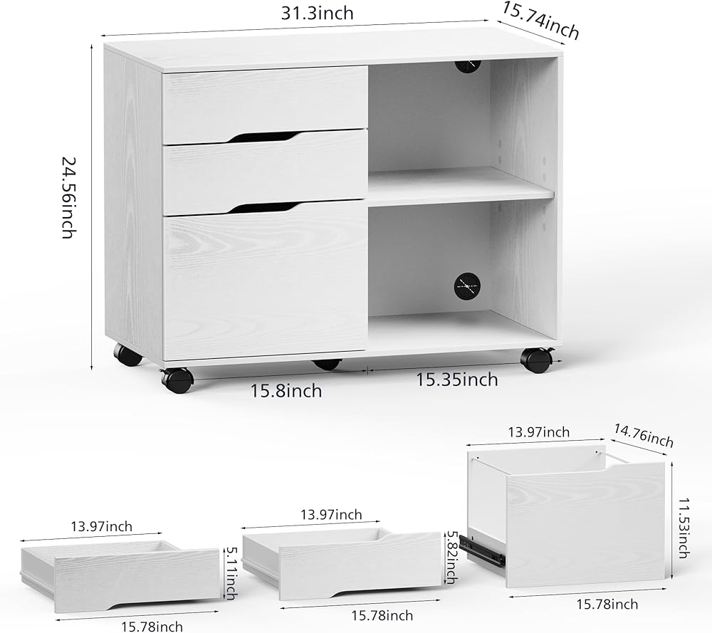 【خزائن تخزين متعددة الوظائف】خزانات التخزين الأنيقة ذات مساحة تخزين مفتوحة وأدراج الملفات يمكن أن تخدم أغراضك المختلفة. يمكنك استخدامه في المكتب لتنظيم الأجهزة المكتبية، والورق، والملفات واللوازم، كحامل طابعة. يمكن استخدامه أيضًا في المنزل لتنظيم الفوضى في غرفتك. يمكن أيضًا وضعها في المدخل لتخزين الأوشحة والمفاتيح والقبعات.