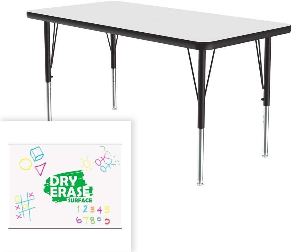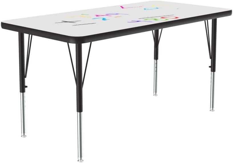 Correll Height Adjustable Activity Table. Table Size is 24"x48" Rectangle. Height adjustable from 19" to 29" in 1" increments (perfect for kindergarten to adult) Speedwrench included for fast and secure height adjustments. High Pressure Laminate resists scratch's, food and stains far better than melamine, solid white dry erase / markerboard top encourages student collaboration. 1-1/8" High Density particle board core provides strength. Heavy Duty legs include oversize hairpin brace and shouldered set screws for maximum safety. Shoulder on leg set screw provides an extra measure of security even if the legs are not properly tightened. Leg mounting brackets are pre attached with 7 screws plus 3 additional screws in the leg plate. Black T-Mold edging and black and chrome legs. Tables are custom built to order and Made in the USA. YOU CAN COUNT ON CORRELL: Correll was established in 1969 and has been in business for over 50 years. With our outstanding Standing Customer Service, innovative new product lines, and the largest selection of Folding Tables available from any manufacturer, now, more than ever, you can count on Correll. In an age where it seems like everything is imported, over 90% of Correll products are still Made in the USA at our factory in Arkansas