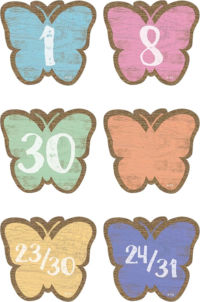 These butterfly calendar days come with 31 calendar days, plus a 23/30 card, a 24/31 card, and 3 blank cards. Use them to turn our calendar charts into reusable calendars month after month! Each card measures approximately 2-3/4" x 2-1/2". Each pack includes 36 cards.