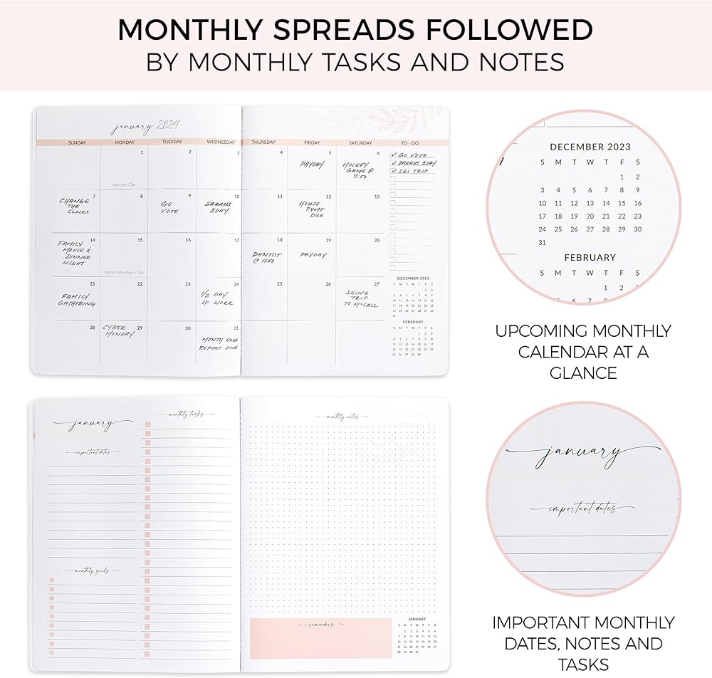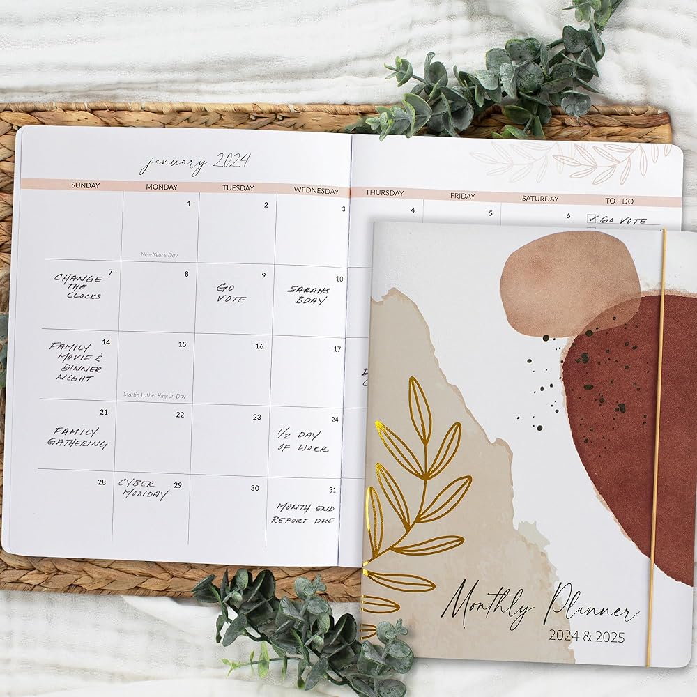 Super Easy To Stay On Top Of Things: Thanks to the simplified and straightforward monthly view of the monthly planner 2024-2025 planning ahead is easy & efficient, making it a breeze for you to keep track of your appointments, birthdays, business meetings, kids' baseball practice and more - don't forget to schedule some pampering “me-time” for yourself