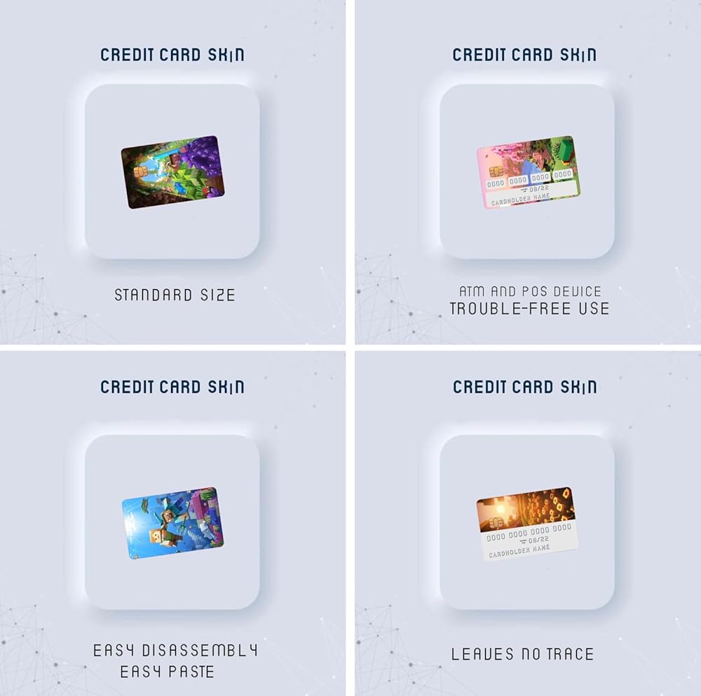 مجموعة مثالية من الملصقات المتوافقة: نضيف 4 ملصقات متوافقة إلى كل مجموعة من أغلفة الرسوم المتحركة هذه ونجهزها لك كقطع مسبقة ومناسبة للاستخدام. نحن نقدم لك الفرصة لإجراء الدفع بدون تلامس وجميع معاملات سحب / إيداع الأموال الخاصة بك دون أي مشاكل عن طريق قطع جزء البطاقات الذي يتوافق مع قسم الشريحة لجميع الملصقات التي نستخدمها على بطاقات الخصم والائتمان.