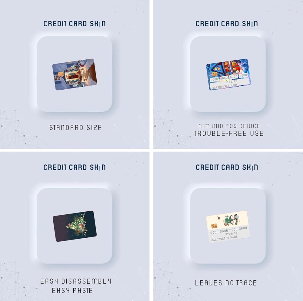 مجموعة مثالية من الملصقات المتوافقة: نضيف 4 ملصقات متوافقة إلى كل مجموعة من أغلفة الرسوم المتحركة هذه ونجهزها لك كقطع مسبقة ومناسبة للاستخدام. نحن نقدم لك الفرصة لإجراء الدفع بدون تلامس وجميع معاملات سحب / إيداع الأموال الخاصة بك دون أي مشاكل عن طريق قطع جزء البطاقات الذي يتوافق مع قسم الشريحة لجميع الملصقات التي نستخدمها على بطاقات الخصم والائتمان.