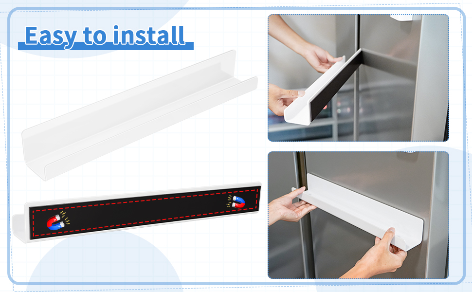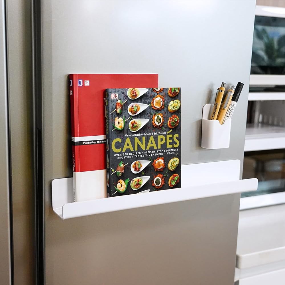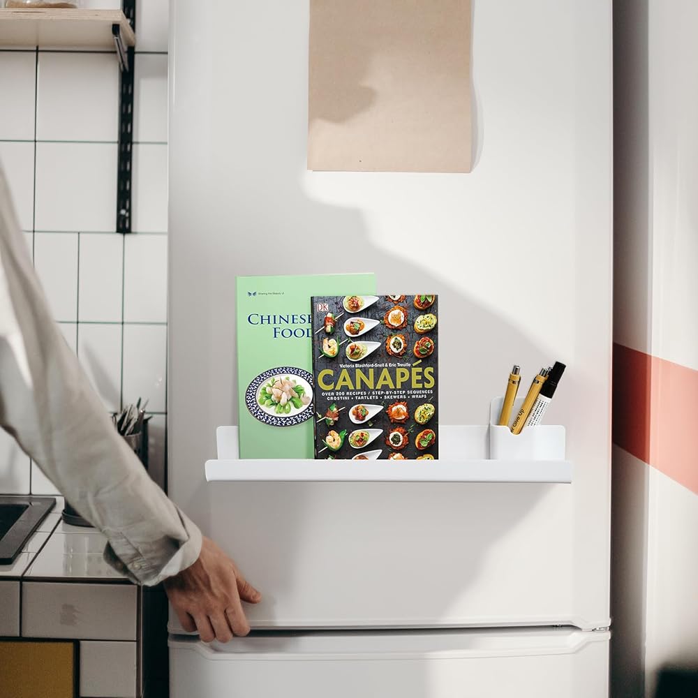 [سهل ومريح] استخدام حامل الكتب المغناطيسي الخاص بنا أمر سهل. ما عليك سوى ربطها مباشرةً بأي سطح مغناطيسي أملس للحصول على حل تخزين فوري. بالإضافة إلى ذلك، فقد جعلنا الأمر أسهل من خلال تضمين طبقة واقية على السطح - ما عليك سوى تقشيره قبل الاستخدام، وستكون جاهزًا للتنظيم بسهولة!