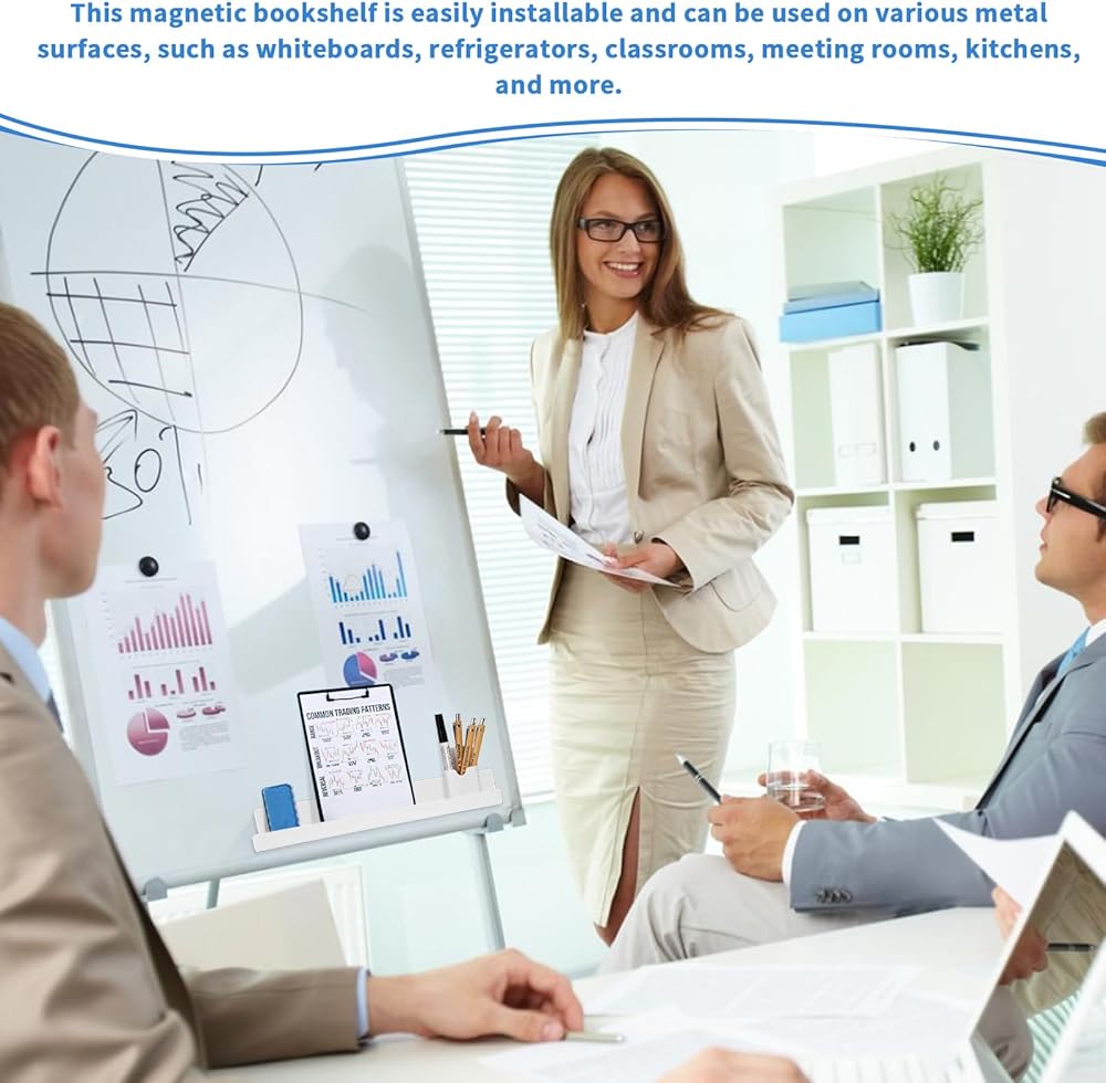 [تصميم متعدد الوظائف] نحن نتجاوز مجرد تخزين الكتب. يشتمل رف الكتب المغناطيسي للسبورة البيضاء على حامل أقلام مغناطيسي، مما يسمح لك بتخزين الأقلام وممحاة اللوحة والأدوات الأساسية الأخرى في نفس المكان بشكل مريح. حافظ على مساحة التدريس أو العمل الخاصة بك منظمة وخالية من الفوضى مع هذه الإضافة المدروسة.