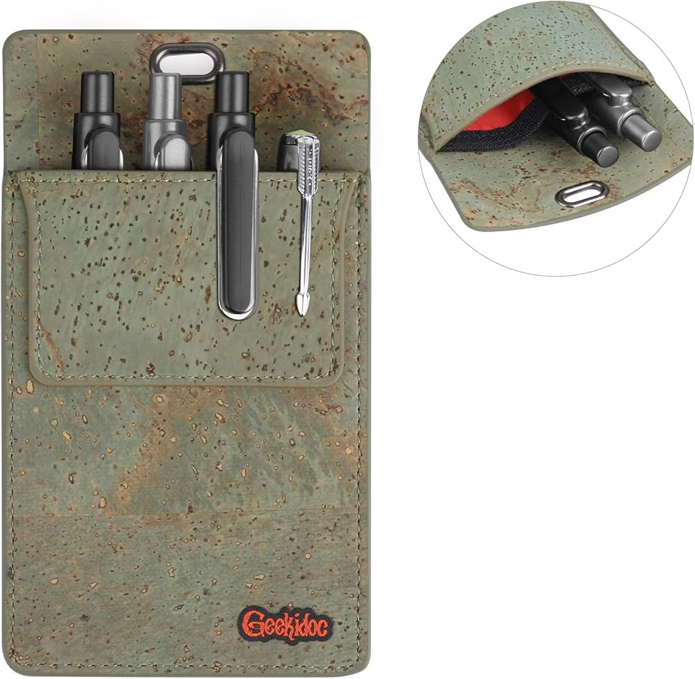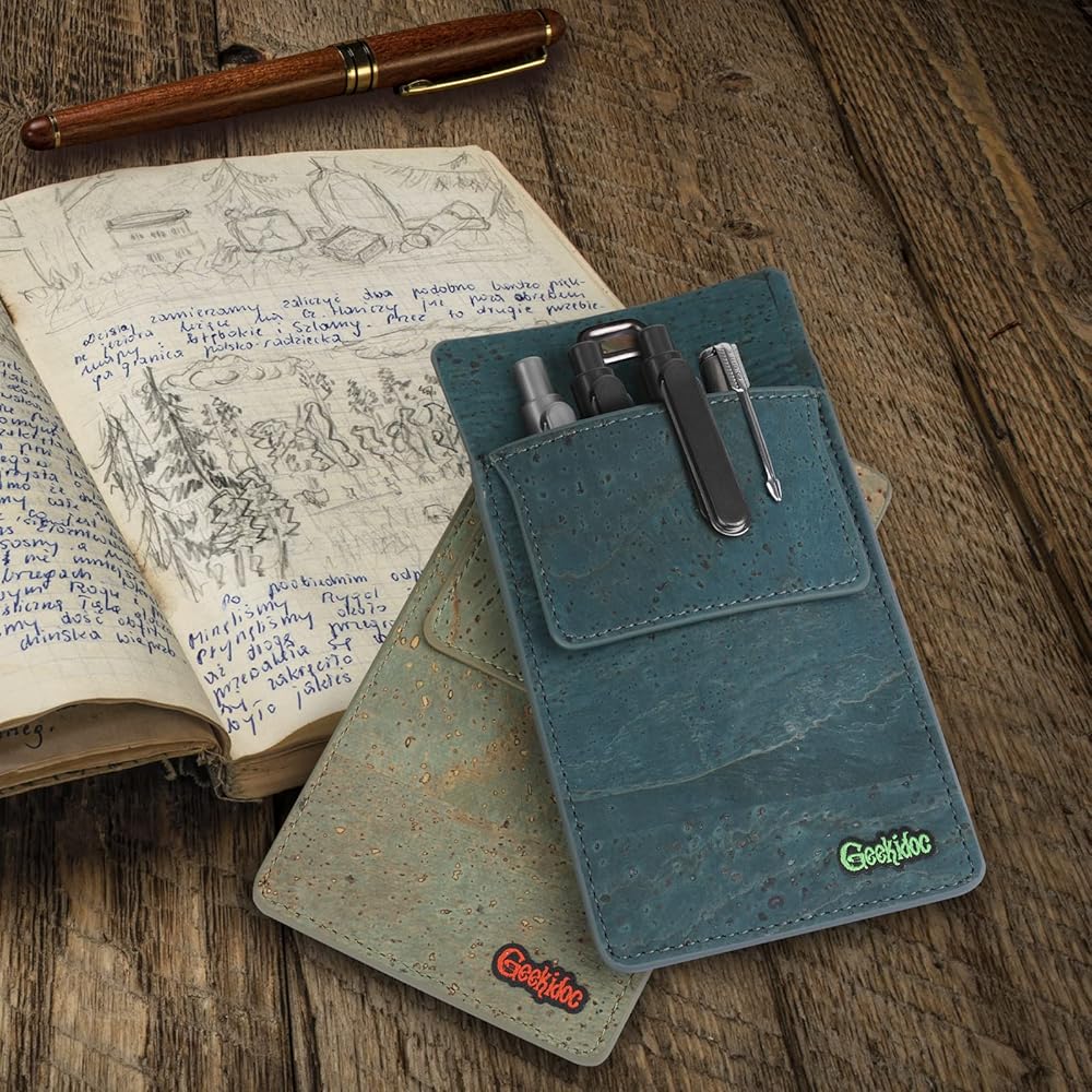 فلين عالي الجودة: حان الوقت لترك الجلد والبولي يوريثان واختيار الفلين عالي الجودة السميك والمرن! تم تصميم كل واقي جيب من الفلين البرتغالي الفاخر من Geekidoc باستخدام الفلين البرتغالي الأصلي والمستدام، مما يوفر حماية أفضل لجيب القميص الخاص بك.