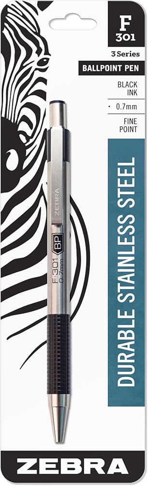 Zebra Pen F-301 Retractable Ballpoint Pen is sleek, sophisticated and easy to sanitize. This hard-working metal pen brings industry-leading precision and stability to your writing. The refillable F-301 has a metal plunge, clip and cone for an executive look. Retractable ballpoint pen has black ink and a 0.7mm fine point tip. Corrosion resistant, stainless steel barrel is easier to sanitize than plastic. Shorter barrel slips easily into shirt pockets. Comfort grip matches barrel accents. Metal clip readily attaches to a notebook, planner, work bag or briefcase pocket. This 12-count pack of attractive pens is perfect for home, school or office. Clean and stylish, this trusted pen is suitable for boardrooms, courtrooms, classrooms, medical settings, offices and job sites. It's the right pen for any job.