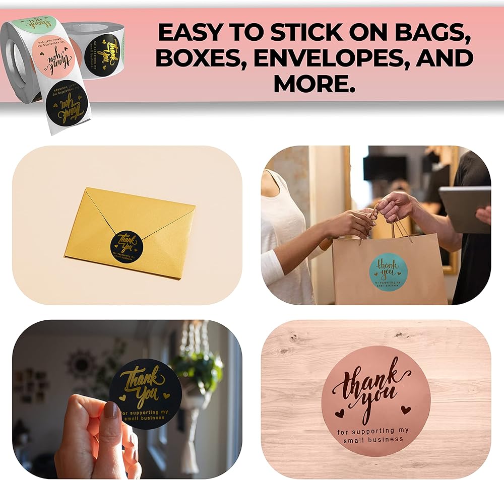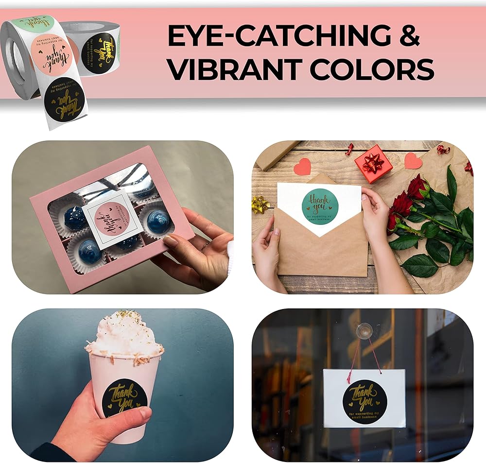 【ملصقات قوية ذاتية اللصق】تضمن ملصقات الأعمال الصغيرة ذات خصائص ذاتية اللصق القوية بقاء ملصقات الشكر في مكانها، مما يترك انطباعًا دائمًا على عملائك.