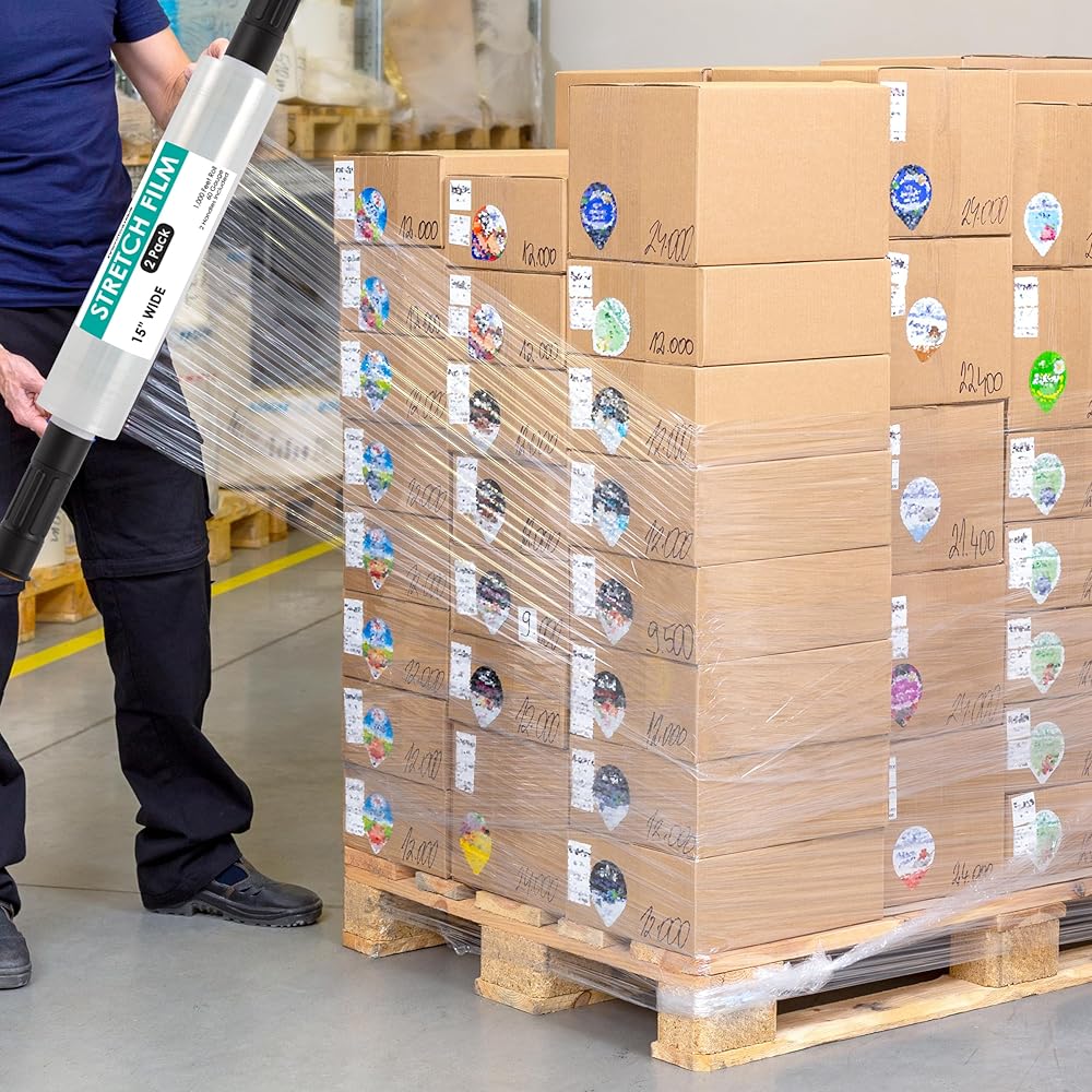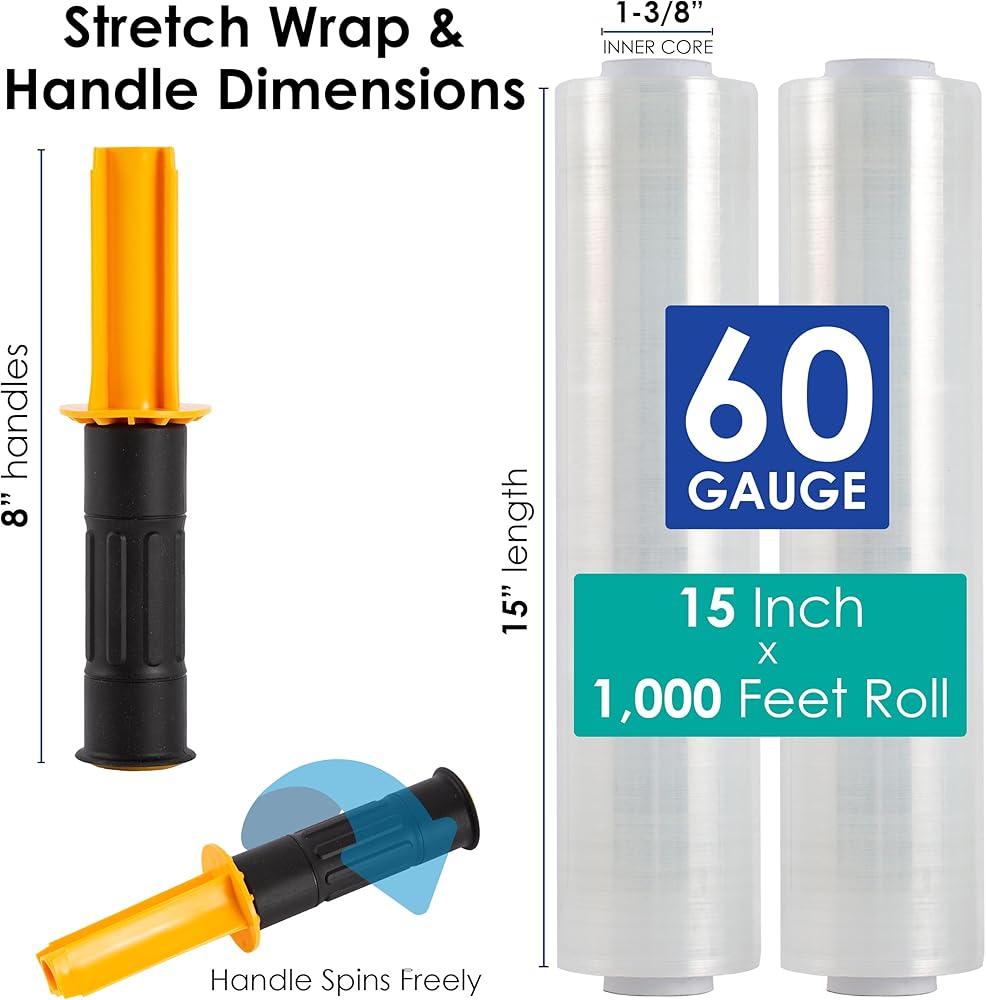 مبتكرة Haus 2 حزمة تمتد التفاف تمتد فيلم لفة مع مقابض لتغليف البليت. 1000 قدم لكل لفة 60 قياس 15 بوصة واسعة القوة الصناعية غلاف بلاستيكي شفاف. حماية السطح للأثاث