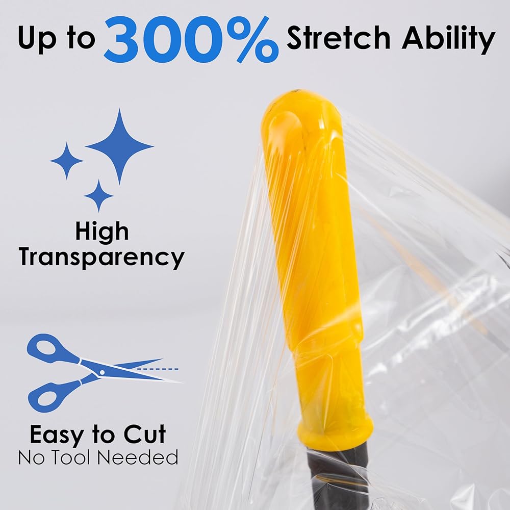 الكفاءة: قم بتعبئة الصناديق المتحركة والأثاث الخاص بك بثقة باستخدام غلافنا المطاطي الشفاف مع العلم أنه سيكون محميًا من الغبار والمطر والأوساخ. ضروري للاستخدام للتخزين على المدى الطويل.