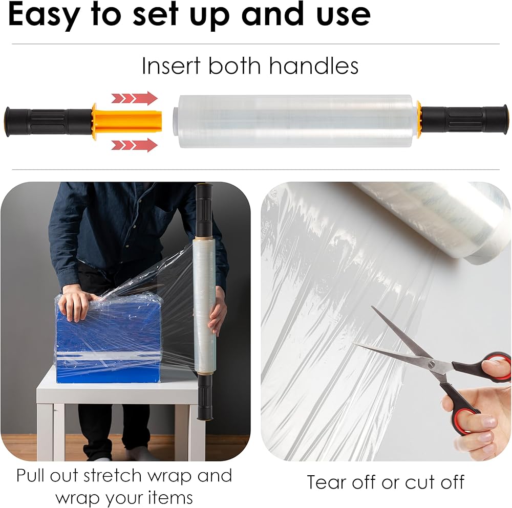 سهل الاستخدام: أدخل المقبضين على جانبي الفيلم المطاطي. يتيح لك ذلك تمديد تغليف الأثاث ومنصات الشحن والأجهزة بسرعة وكفاءة. لوازم النقل الأساسية.