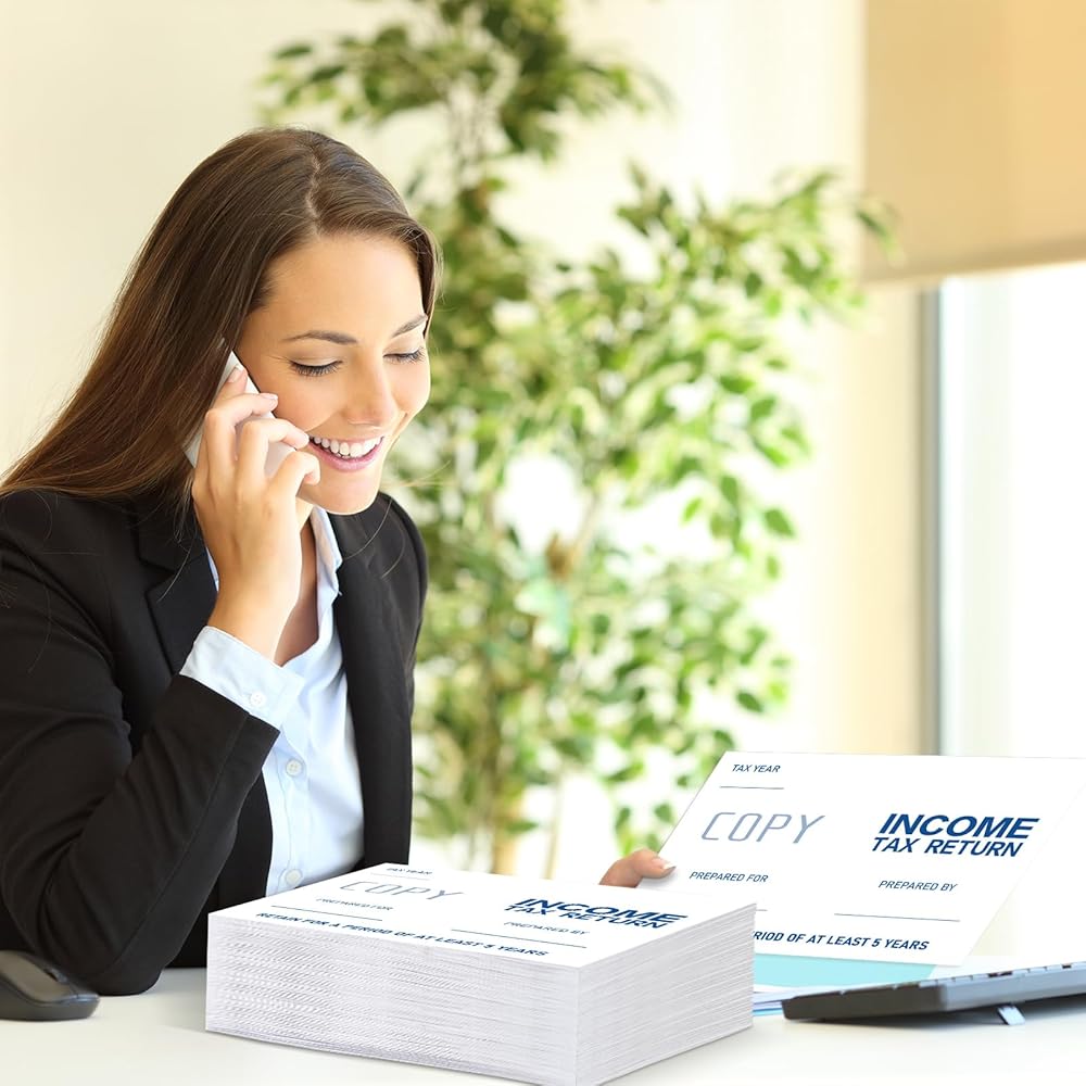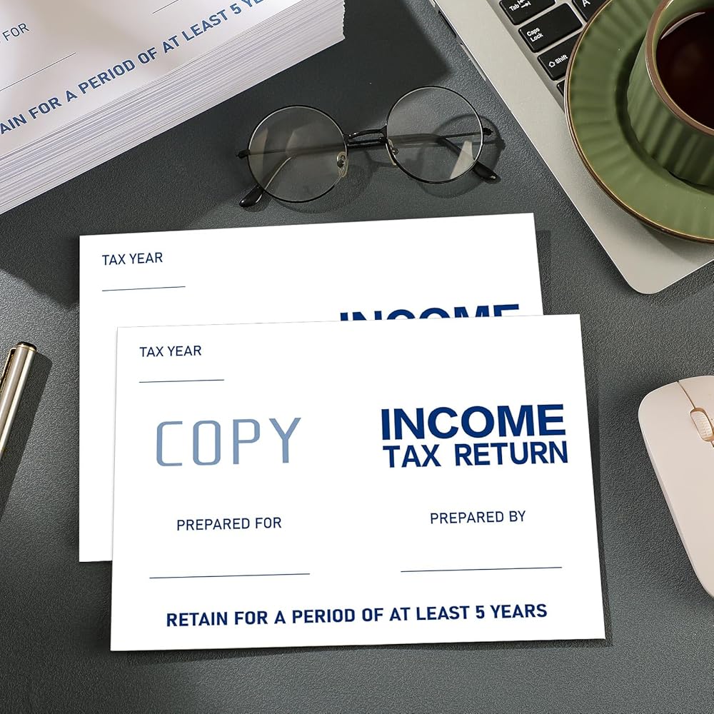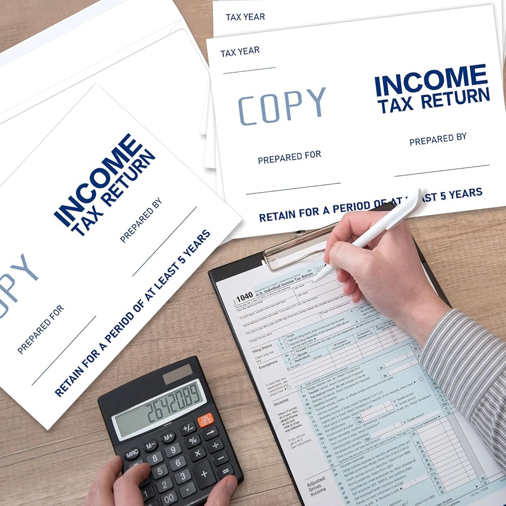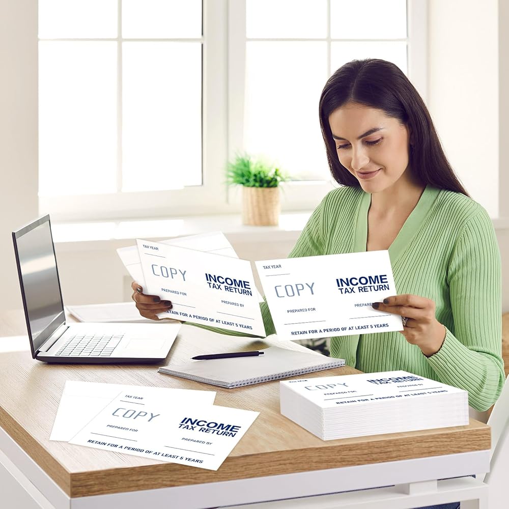 • Captivating Design and Printable: presenting a stylish appearance, these tax envelopes for tax preparers feature a bright white background adorned with a delicate blue pattern and text; Expanding the convenience for the users, they are printer friendly; You can easily print addresses directly on them using your home laser or inkjet printer (not included); Say goodbye to the time consuming task of writing addresses by hand and switch to our printable envelopes for an effortless mailing experience
