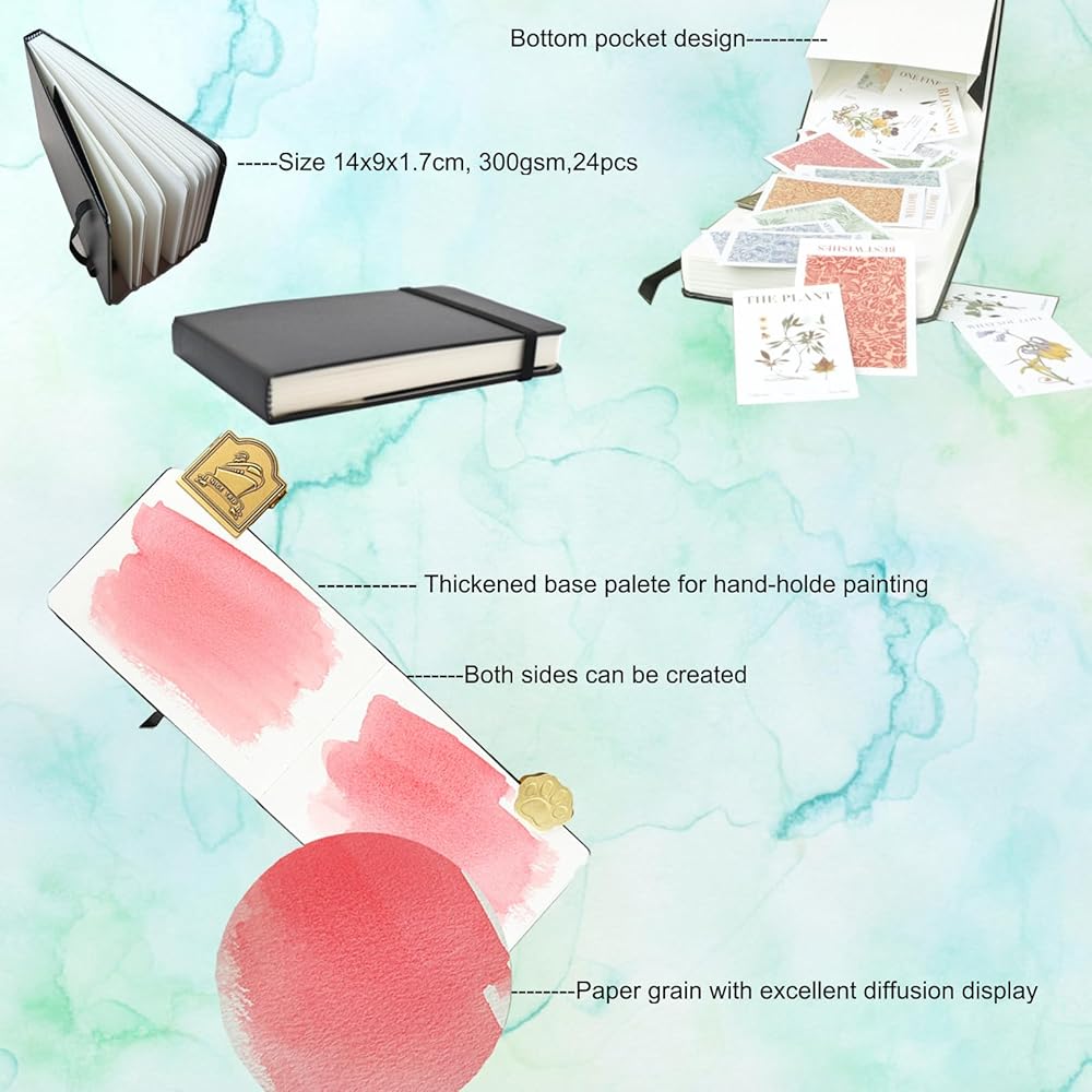 كتاب رسم - يتكون من 24 ورقة، 300 جم من ورق لب الخشب معبأ بالجلد الصلب. خالٍ من الأحماض وذو درجة حموضة محايدة، يحافظ على الألوان نابضة بالحياة بمرور الوقت دون أن تتحول إلى اللون الأصفر أو الهشة، مما يحافظ على عمر العمل الفني.