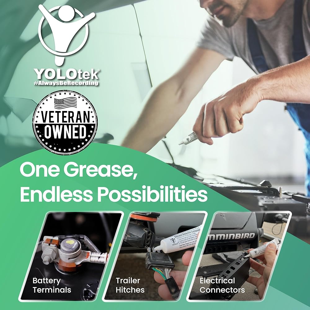 YOLOtek (مملوك للمحاربين القدامى) شحم عازل. الحل الأمثل لتشحيم وحماية الموصلات الكهربائية من التآكل. مصنوع من مادة السيليكون عالية الجودة المقاومة لدرجات الحرارة المرتفعة.