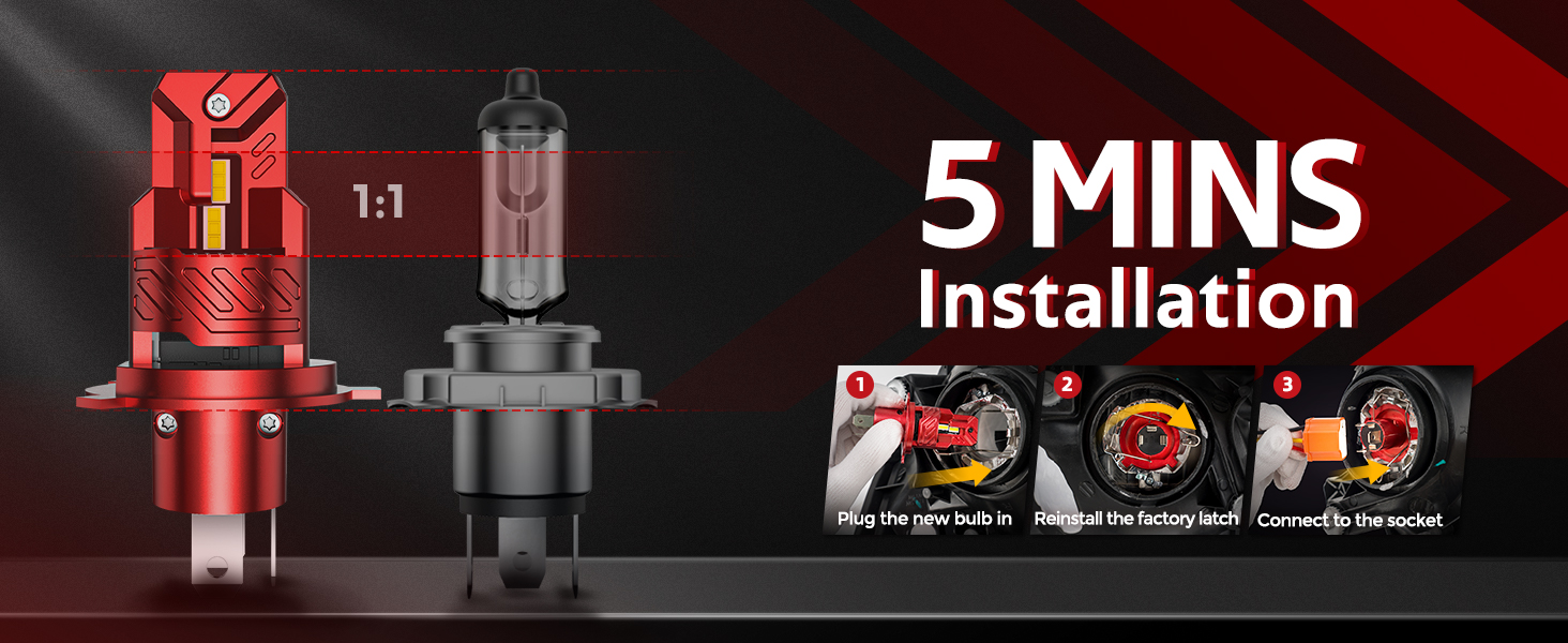 تركيب لمدة 5 دقائق، بدون صابورة: مصابيح الضباب LED H4 قابلة للتوصيل والتشغيل، مع دمج السائق في المصابيح. لا توجد كابلات إضافية وأجزاء معلقة. يمكن الانتهاء من التثبيت في 5 دقائق