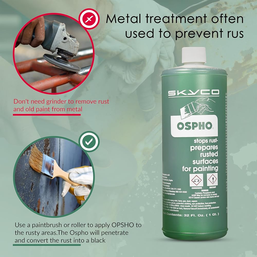Your Search For The Most Efficient Rust Metal Treatment Is Officially Over! Looking for a reliable rust cleaner for metal to prepare your surface before painting? Want a metal rust stopper to ensure your metal accessories will properly perform in the long run? Introducing The Must-Have Metal Treatment By Ospho! Now you don't have to waste your money on a low-quality rust converter spray or an ineffective rust inhibitor spray to get rid of rust corrosion. Ospho offers a problem-solving metal treatment that prevents rust from ruining your metal surface and prepares it for a new coat of paint. Why People Choose Our Rust Stain Remover? Here Are Top 3 Reasons: ✅ The Key To Rust-Free Surfaces: metal surfaces exposed to the elements are more prone to rust. This metal treatment comes in handy when you need to remove rust from your surfaces and prepare them for new paint. ✅ Extra Cleaning Towel To Facilitate Your Work: every metal treatment product comes with an added cleaning towel to help you complete your painting tasks while keeping your space and yourself clean. ✅ Must-Have Addition To Your Garage: make rust disappear and prepare any indoor or outdoor metal surface for painting with this practical product designed to make your paint job last longer. Need More Reasons? ✔ Ideal Rust Removing Solution For Cars, Tracks, Motorcycles, Boats & More Vehicles ✔ Highly Performing Formula Suitable For Indoor & Outdoor Use ✔ Essential Rust Removing Treatment To Keep Your Metal Surfaces In Perfect Condition What You Will Get: 1 x Metal Treatment 1 x Practical Cleaning Towel As A Gift Don't Hesitate! Click "Add To Cart" & Get Yours NOW!
