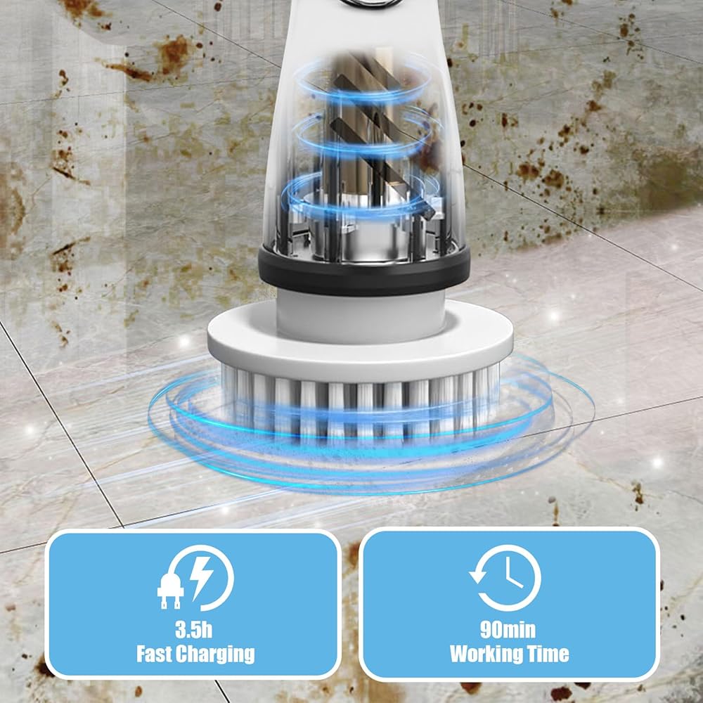 • 【High-Quality】The electric scrubber can rotate at up to 300 RPM, with two adjustable speeds for daily cleaning or removal of stubborn stains. It can be used for 90 minutes after charging.