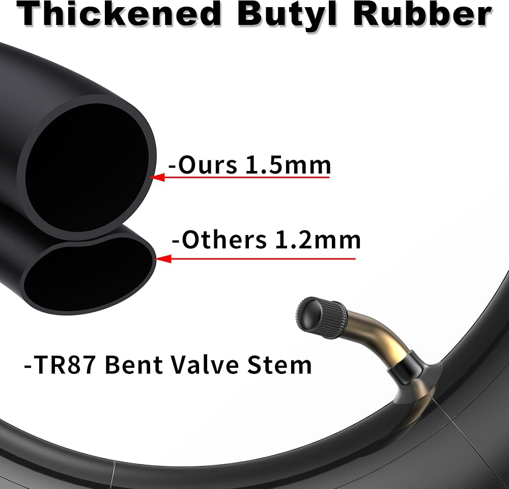 【عمر خدمة أطول】يمنع الأنبوب الداخلي السميك من مطاط البوتيل الأنبوب من التمزق والتسرب. لن تحتاج هذه الأنابيب الداخلية إلى إعادة تضخيمها لمدة تصل إلى 6 أشهر. الحد الأقصى لضغط التضخم (PSI): 30PSI