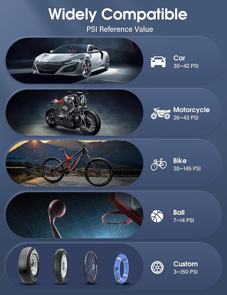 • 【مضخة إطارات السيارة ذات إمكانية استخدام واسعة】مجهزة بأنبوب قابل للنفخ و4 ملحقات محول فوهة قابلة للنفخ لضمان توافقها مع السيارات والدراجات النارية والسيارات والكرات وحلقات السباحة والألعاب القابلة للنفخ، ولكنها لا تناسب المركبات الكبيرة. مثل الحافلات والشاحنات الثقيلة. هناك 4 أوضاع تضخم تلقائية محددة مسبقًا ليستخدمها المبتدئين. يمكن للوضع اليدوي أيضًا ضبط قيمة الضغط (3-150 رطل لكل بوصة مربعة) وفقًا لكائن التضخم لتلبية أنواع مختلفة من متطلبات تضخم الإطارات