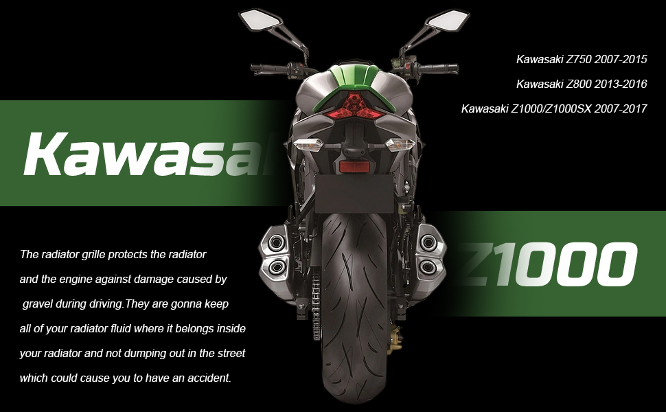 الملاءمة - غطاء حماية لشبكة المبرد للدراجات النارية مناسب لـ Kawasaki Z750 2007-2015، Z800 2013-2016، Z1000/Z1000SX 2007-2017.