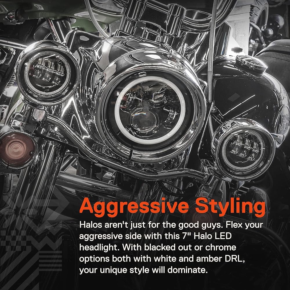 • تصميم عدواني - الهالات ليست فقط للأخيار. استعرض جانبك العدواني مع هذا المصباح الأمامي الهالو LED مقاس 7 بوصات المدمر للطرق السريعة والمظلم. مع خيارات اللون الأسود والكروم مع كل من اللون الأبيض والعنبر DRL، سيهيمن أسلوبك الفريد.