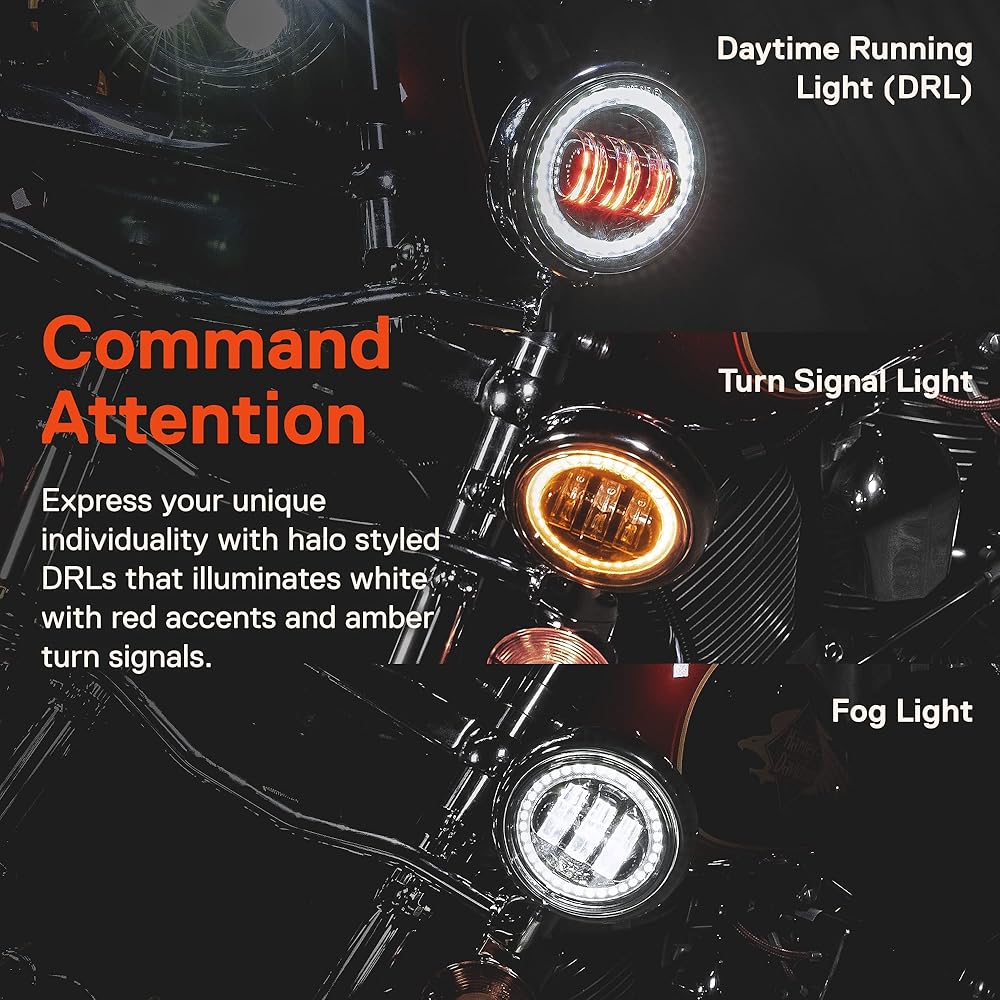 • القوة الأسطورية - قم بإسقاط الترس على الإضاءة الضعيفة واتركه في الغبار. تعمل مصابيحنا الأمامية مقاس 7 بوصات على دفع 4500 لومنًا من الضوء المدمر ليلاً، ومع 1440 لومنًا إضافيًا من كل مصباح عابر، سيكون لديك ما يكفي لإبقائك على الطريق لفترة طويلة بعد غروب الشمس.