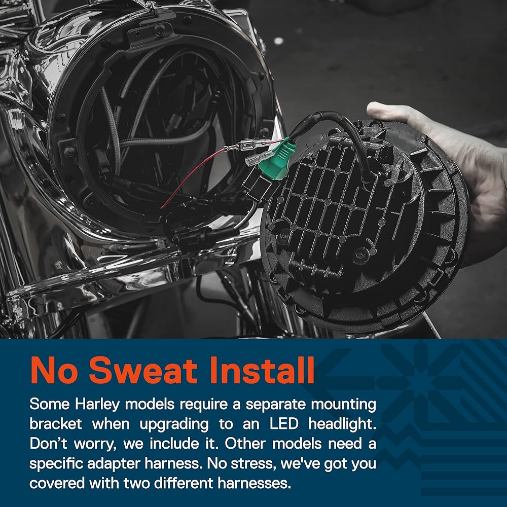 • لا يوجد تركيب سويت - تتطلب بعض موديلات Harley دعامة تثبيت منفصلة عند الترقية إلى مصباح أمامي LED. لا تقلق، نحن ندرجه. تحتاج النماذج الأخرى إلى مجموعة أدوات محول محددة. لا داعي للقلق، فنحن نوفر لك حزامين مختلفين.