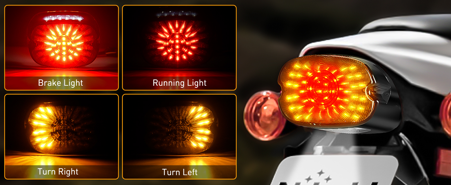 【وظائف متعددة في واحد】يمكن استخدام هذه المصابيح الخلفية كإضاءة تشغيل، وإضاءة فرامل، وإضاءة إشارة الانعطاف (اتجه إلى اليسار/اليمين)، وتأتي أيضًا مع ضوء لوحة ترخيص إضافي. تم تصميم جميع الأوضاع والوظائف معًا وهي أكثر عملية من المصابيح الخلفية الأصلية