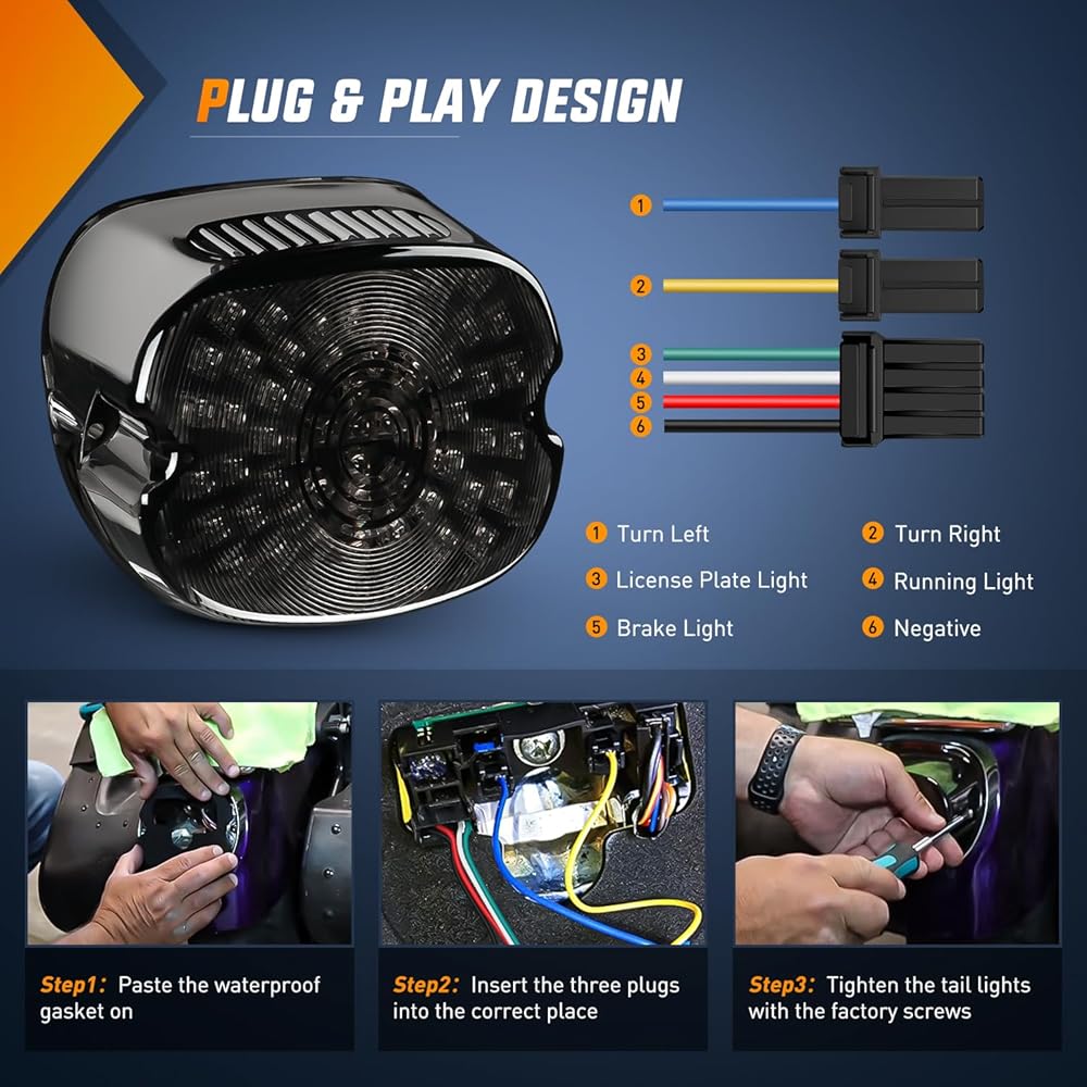 Nilight LED ضوء الذيل دراجة نارية الفرامل بدوره إشارة لوحة ترخيص القيادة الضوء الخلفي التوصيل المدخن والتشغيل لـ Harley Davidson Dyna Sportster 883 1200 Road King Glide Electra Heritage، ضمان لمدة عامين
