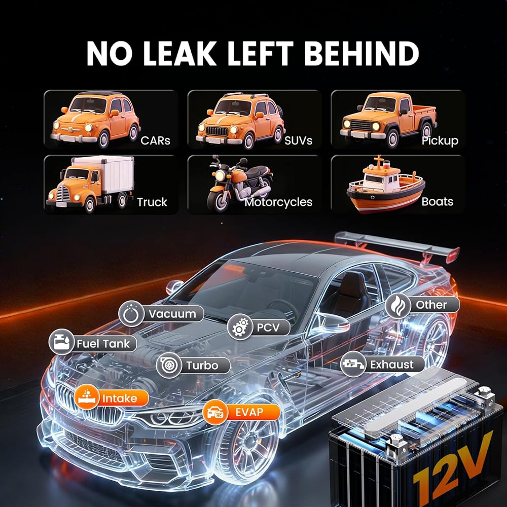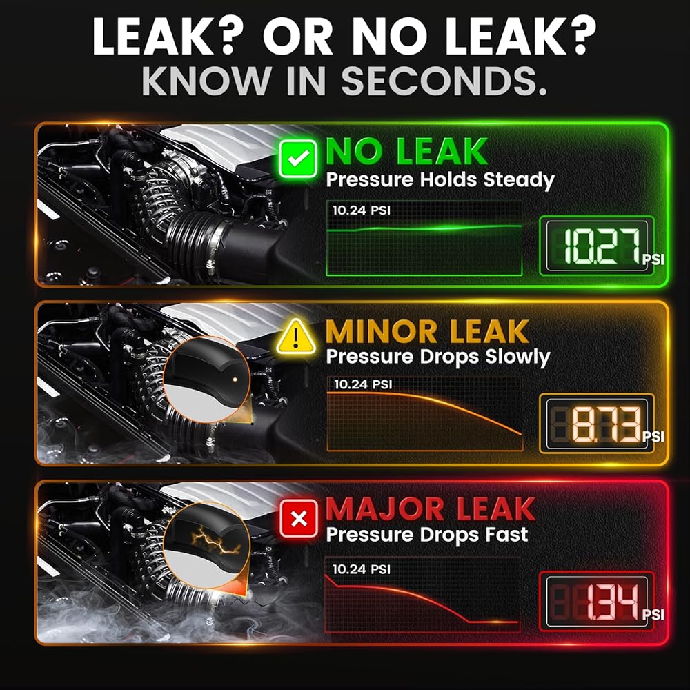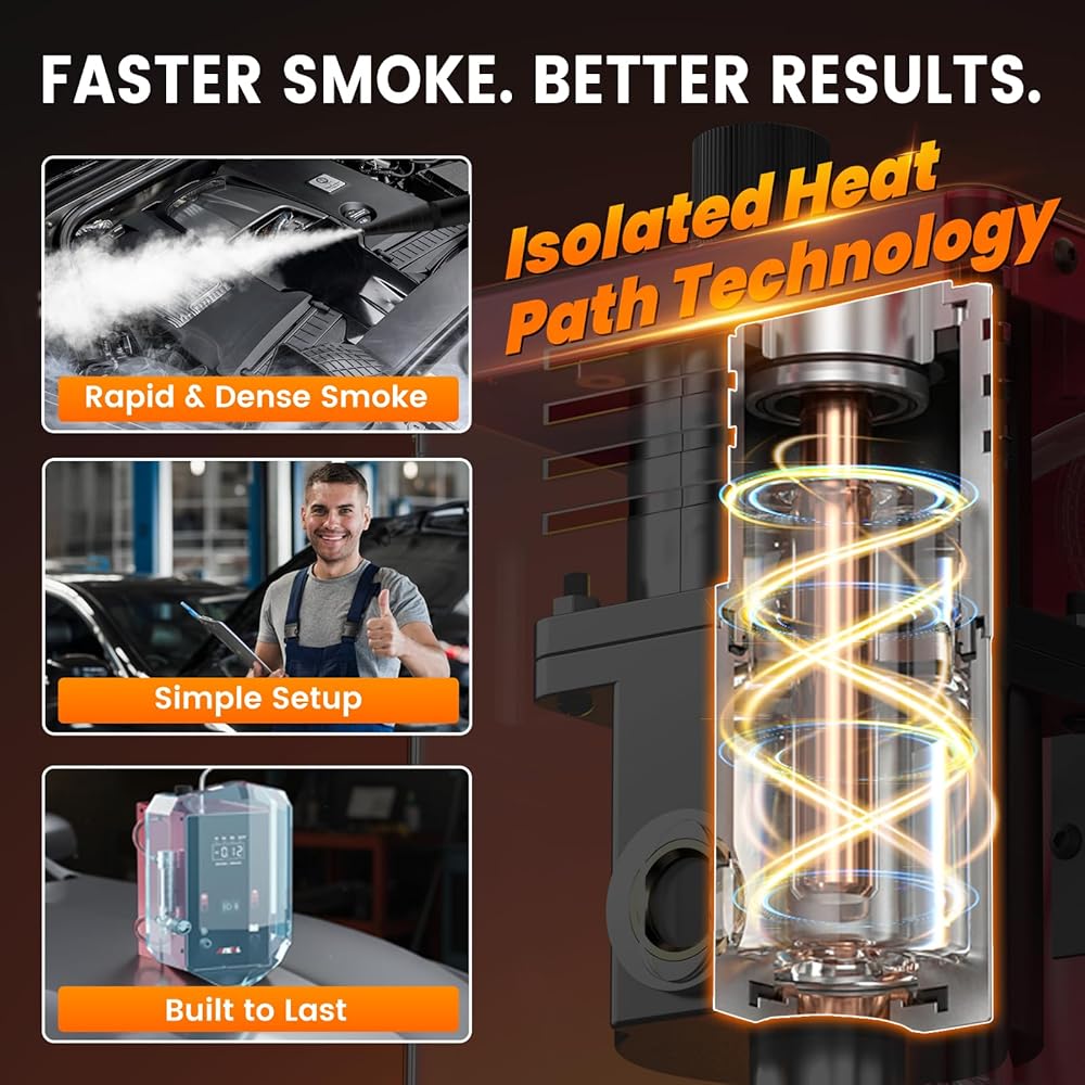 💨[حدد موقع جميع أنواع التسريبات] بدءًا من التسريبات الشائعة مثل تسربات الفراغ والعادم والسحب، إلى التسريبات الصغيرة من الأجزاء المكسورة، يمكنك اكتشافها جميعًا باستخدام كاشف تسرب دخان السيارات الاحترافي. يمكنه تحديد موقع أكثر من 99% من نقطة التسرب بدقة في غضون دقائق قليلة عن طريق إخراج دخان سميك ومتسق. مناسبة لأنظمة EVAP، وتسربات الفراغ، وتسربات توربو منخفضة الضغط، ومشعبات السحب، وأنظمة التبريد/EGR/العادم، والمطاط البالي، والحشيات، والأختام، والموصلات والمزيد