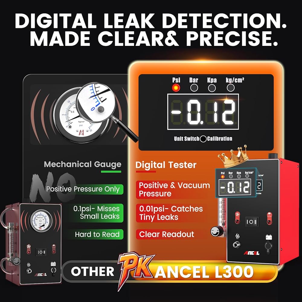 🏆[أوضاع عمل مزدوجة]+[مقاييس الضغط المرئية] جهاز اختبار الدخان ANCEL S200 مجهز بوضعين للعمل: وضع الهواء للكشف السريع عن التسربات بدون زيت، ووضع الدخان للكشف الدقيق عن التسربات باستخدام زيت الاختبار. مجهزة بمقياس الضغط البصري، يمكنك بسهولة الحكم على مدى التسرب، وكلما كان التسرب أكثر خطورة، كلما زاد انخفاض الضغط.