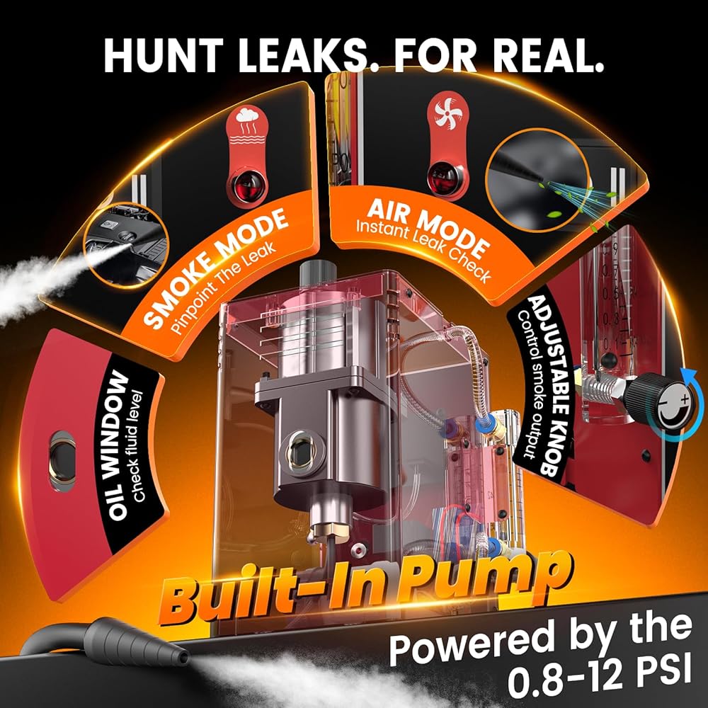👨🔧【يجب أن يمتلكها أي مالك مركبة】أرخص من إحضارها إلى المتجر، ومناسبة لجميع المركبات ذات 12 فولت، هذه السيارة ذات آلة الدخان مستقلة ولا تتطلب ضاغط هواء خارجي مما يجعلها مثالية لأنظمة السيارات الجديدة أو القديمة. هناك الكثير من الأماكن التي يمكن أن يحدث فيها التسرب ويمكنك قضاء الكثير من الوقت والمال في استبدال الأجزاء. مع آلة دخان السيارات هذه، يمكنك بسهولة اكتشاف التسرب واستبدال الأجزاء البالية الصحيحة، والحفاظ على أداء السيارة